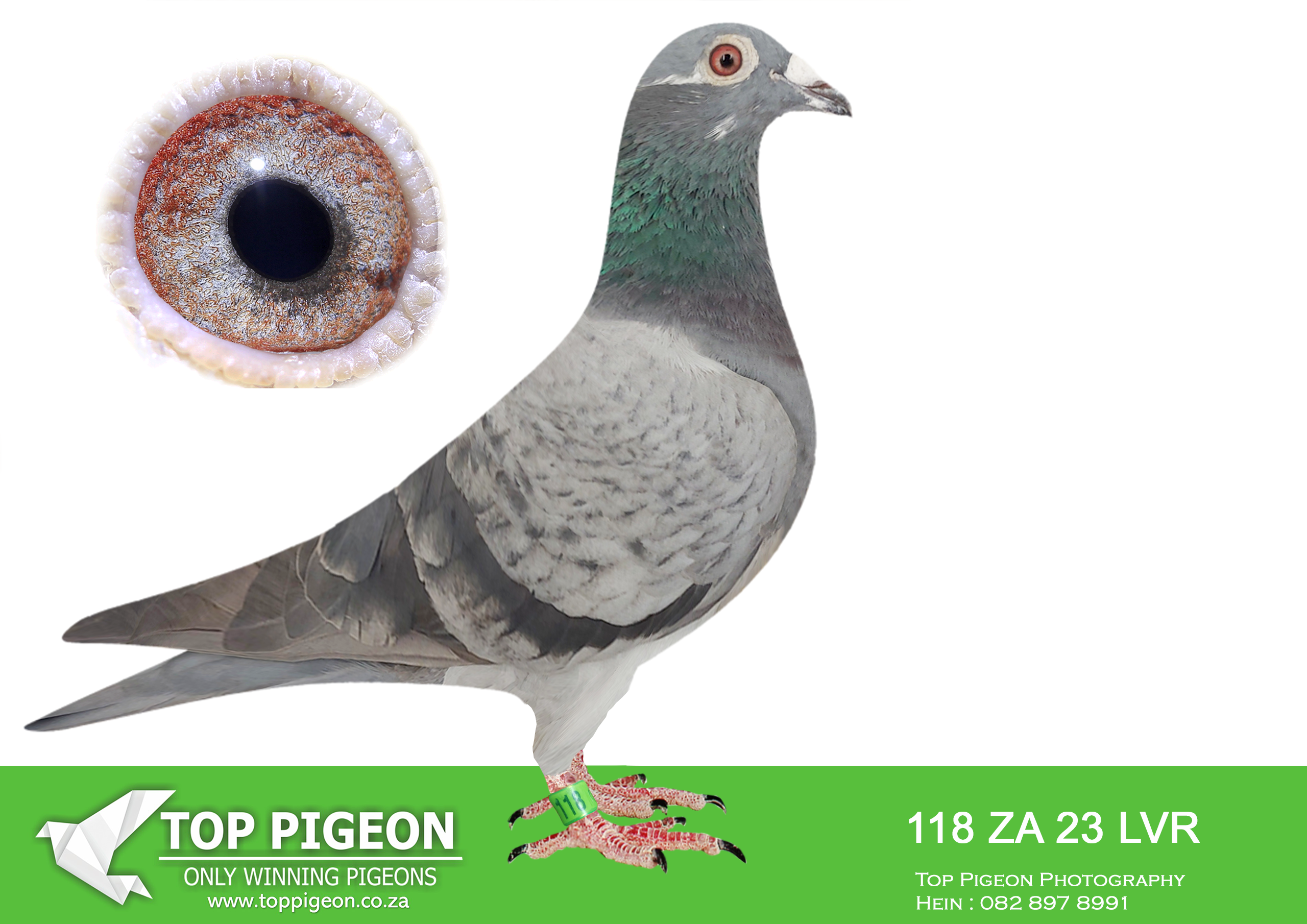 LOT 16 LEGENDS AUCTION – ZA 24 LVR 029 -SIRE:196 ZA 20 ABL.a full brother to the dam of 7 x SANPO Gold medalist , also declared the ” Best Pigeon In The World ” ZA 20 PWDU 9849 alias ” Turbo Kittel “..————DAM:1155 ZA 23 ABL. ALWYN BESTER KITTEL. THIS IS A HALF SISTER TO FIVE STAR (AFRIKAPRO GREEN JACKET WINNER 2023).SEE PEDIGREE!!!!!