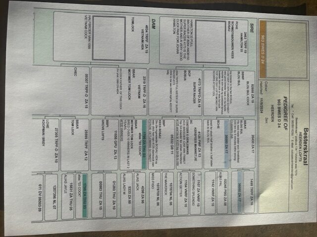 LOT 41 AFRIKAPRO AUCTION 6- Van Heer Racing Pigeons-ZA-24-BPPD-6757 –