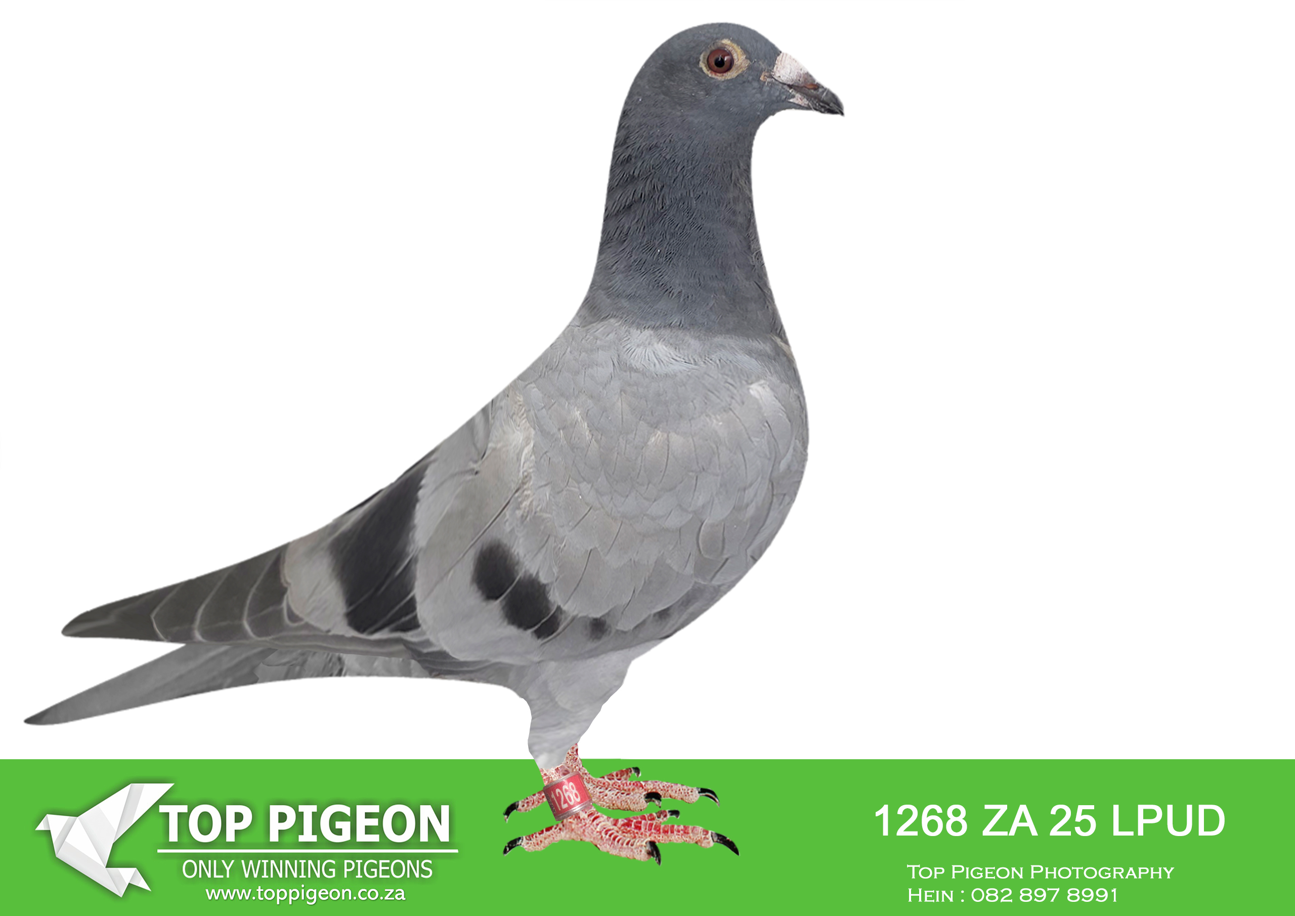 LOT 28 MID JANUARY – ZA 25 LPUD 1268 -SIRE: 8793 ZA 22 VPU .Alias “1ST DINOKENG 2023 LINE” Strain: 810 X 06050/19318 X Vrc Color: BBWF A SUPER PIGEON! The sire ZA GPU 11461/15 – 2nd Klapmuts One Loft Race Final 3 Sisters 500km, 1409 2016! The dam is daughter to ZA DVNH 207/18 – SUPER RACER! -4 x Fed Winner & 1st Ace Middle Distance OVRFederation 2020 when mated to ZA GPU 08400/17 – 1st Carnival Club Race Final Winner 2018, Victoria -West, 705km, vel 1165, Wins the race by 5 1/2 minutes break!! —–——–DAM:1479 ZA 24 ABL . ALWYN BESTER KITTEL. FULL SISTER TO ABL 167 AND 168 WHICH WERE SOLD FOR R338000.00 AND R242 000.00.SEE PEDIGREE!!!!
