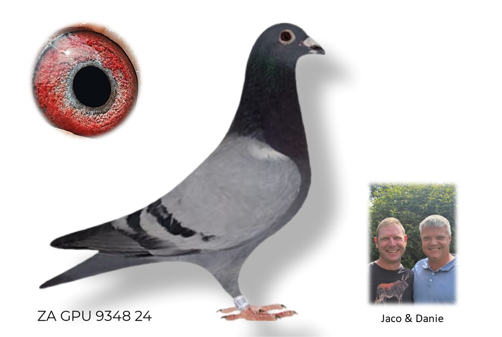 LOT 15 SURPRISE AUCTION – ZA 24 GPU 9340 –SIRE: ZA 19 GPU 13079 -SUPER BREEDER FOR J FAUL – DJ SCHOLTZ. 1 ST YEAR IN STOCK LOFT BRED WINNER AND ANOTHER SUPER RACER FLYING 2,2,12,12,23 IN BCRPC.————–DAM:2526 ZA 18 WRPD.Alias “BEST BIRD WRPD” Strain: Jaco Faul Best Bird WRPD. Very good breeder for J Faul & DJ Scholtz!SEE PEDIGREE!!!!