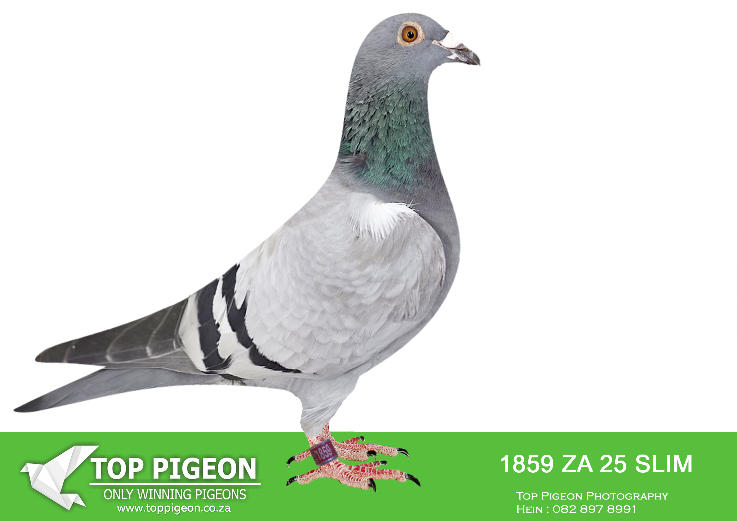 LOT 25 CREAM OF THE CROP AUCTION 2 -1848 ZA 25 SLIM -SIRE:ZA-2020-ABL-144 Alwyn Bester Dirk Van Den Bulck Red Purchased for R36 000.00 – Top Pigeon. ================DAM:ZA-2021-OERF-3441 Blue. JAN VENTER/TOM LOCK.SEE PEDIGREE!!!