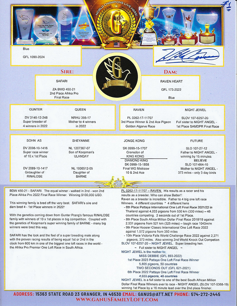 .LOT 3 AFRIKAPRO AUCTION 4 – Ganus Family Loft 2-AU-24-GFL-1090 –
