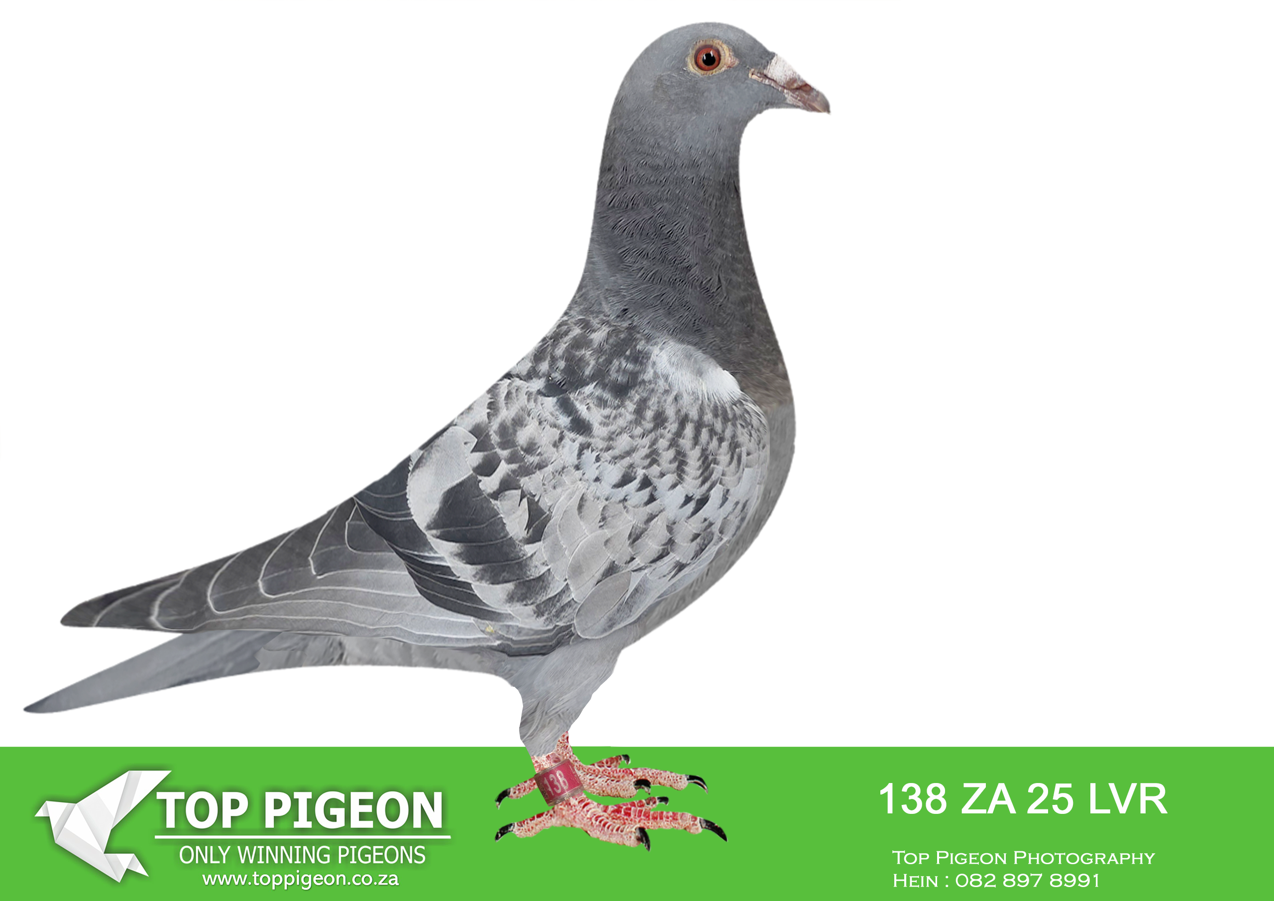 LOT 18 KITTEL AUCTION – ZA 25 LVR 20 -SIRE:1310 ZA 24 ABL.Strain: ALWYN BESTER Color: Blue Chequer Officially 3rd SAIPR FINAL 2025. 4 Pigeons on the drop. Lost by 4 seconds.————-DAM:DAM:175 ZA 24 LVR. KITTEL. BRED FROM SOME OF THE BEST KITTEL GENETICS OF ALWYN BESTER.SEE PEDIGREE!!!