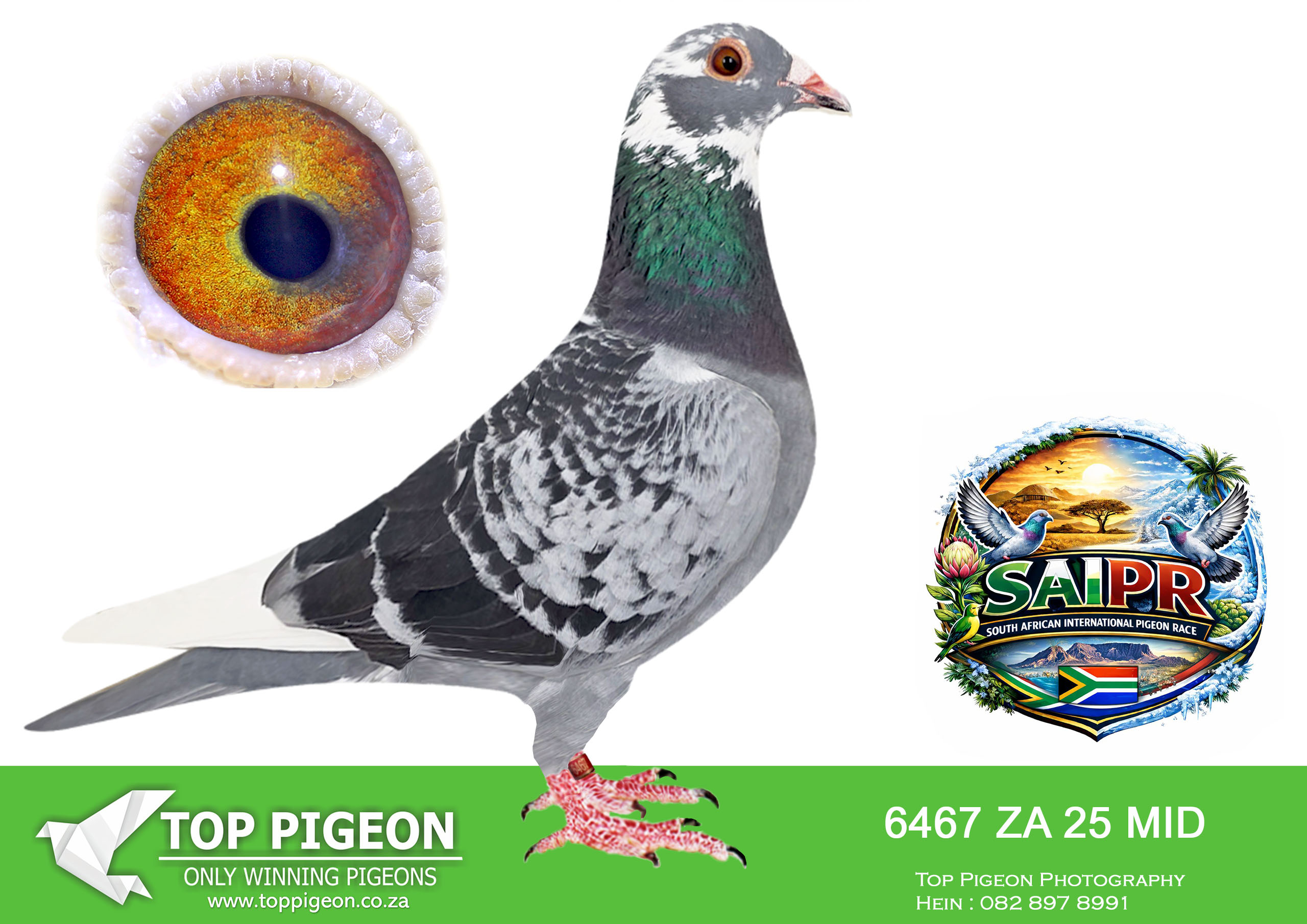 .LOT 3 SAIPR SUMMER AUCTION 1 – Sparks & Murray- MID 6467 2025 -10TH FINAL RACE WINNING R25 000.00———-SIRE:ZA GRPF 1699 2023.SIRE IS AMEEL/PUTTERIE. HIS DAM WERE A SCHELLENS.———–DAM:ZA 24 HOBY 152 –BRED BY ANTON SCHONKEN. SIRE IS 047 ZA 23 HOBY .Alias “Porche Dynamite” Strain: Pipa Elite / Hardy Color: Black Pied Main Loft Breeder from Porche 911, Best Kittel , Blue Sky Mona Lisa Father of many One Loft Racers Father of Roofrack, entrant at Cape Town 2024.SEE PEDIGREE!!!