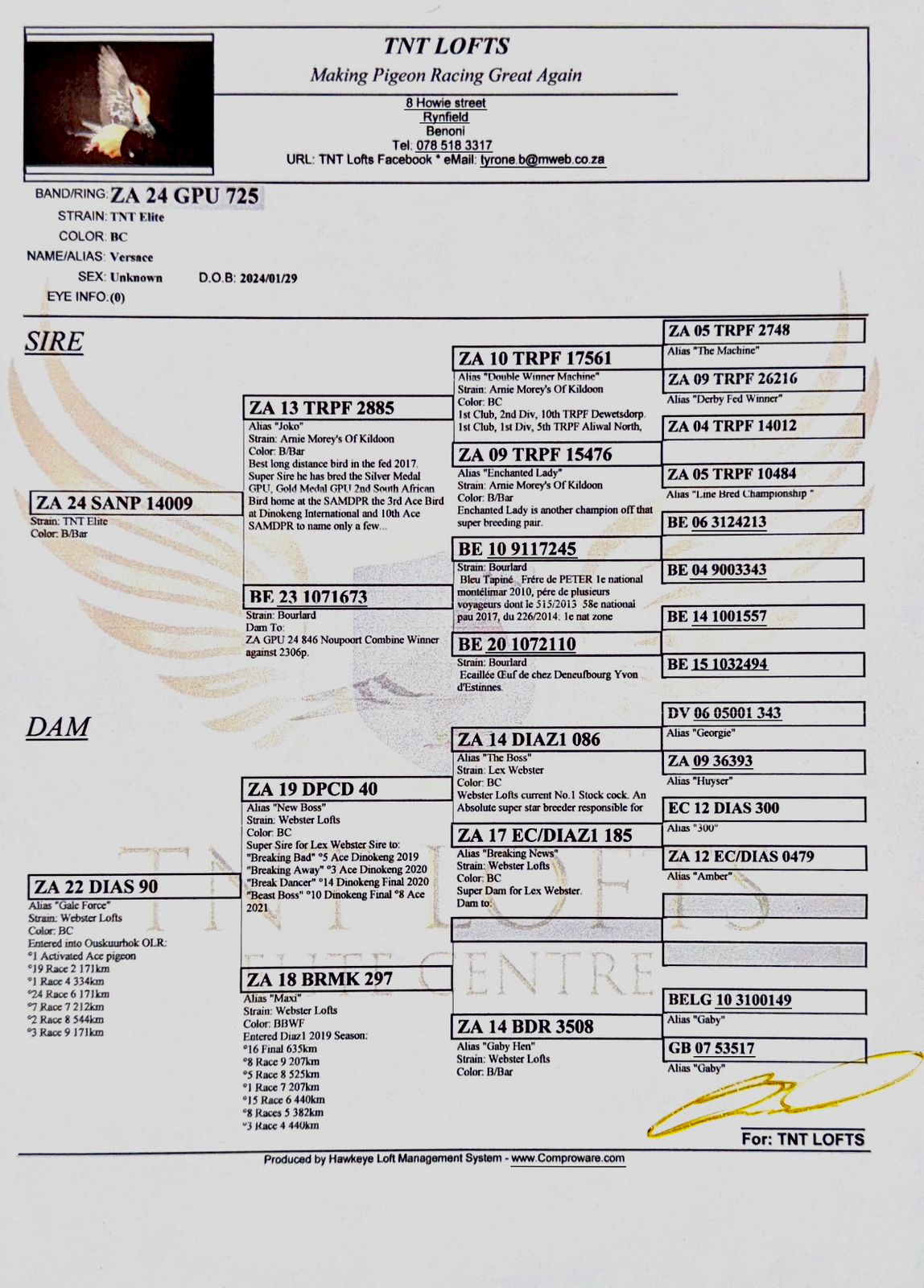 .LOT 5 AFRIKAPRO AUCTION 5 – Triple J Lofts-ZA-24-JJJ-768 –