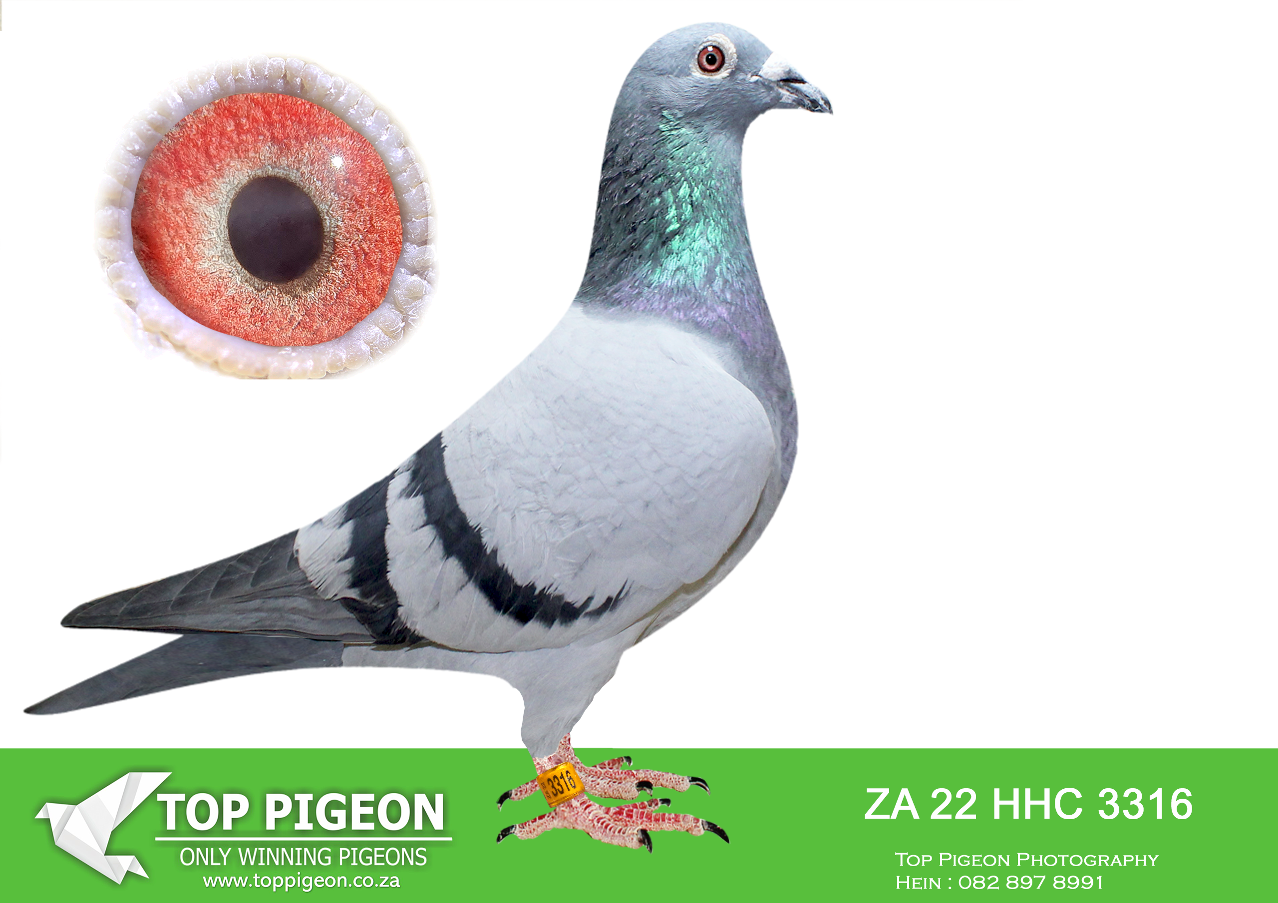 .LOT 8 DU PLOOY FAMILY LOFTS- ZA 22 HHC 3316 BB C -SIRE: 20360 ZA NOK 20 . SIRE IS Sire of 4 winners. Brothers and sisters are super breeders, e.g. 00437, 44, 545, 22584, Ben, Blue Prince, Chappie Gertenbach’s 490, 491, etc.———DAM:20595 ZA NOK 20 .Alias “BELLE” Daughter of super breeder Sonny Bill. SEE PEDIGREE!!!