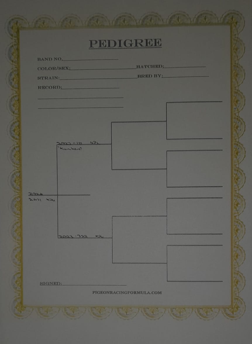 LOT 88 AFRIKAPRO AUCTION 6-Zoltan Buzas-ZA-24-FFL-042 -SIRE:6874 ZA 21 WYNL.Alias “Super Boss” Strain: Africa One Loft Aces Color: BC Flew 10 races in 2022: 2x 1st Club 1 x 2nd Club 1 x 1st Fed 2 x 2nd Fed 2nd Union & a 5th Union. Fed Ace youngbird and 2nd ace Union youngbird.————–DAM:2231 ZA 22 GRPF.Alias “Pogacar” Strain: OLR Color: BBWF AfrikaPro Entrant 2023 Sire bred Eastern Cape Ace Pigeon and 2nd Final 2021 Dam was 10th Final Sapir 2022.SEE PEDIGREE!!!!