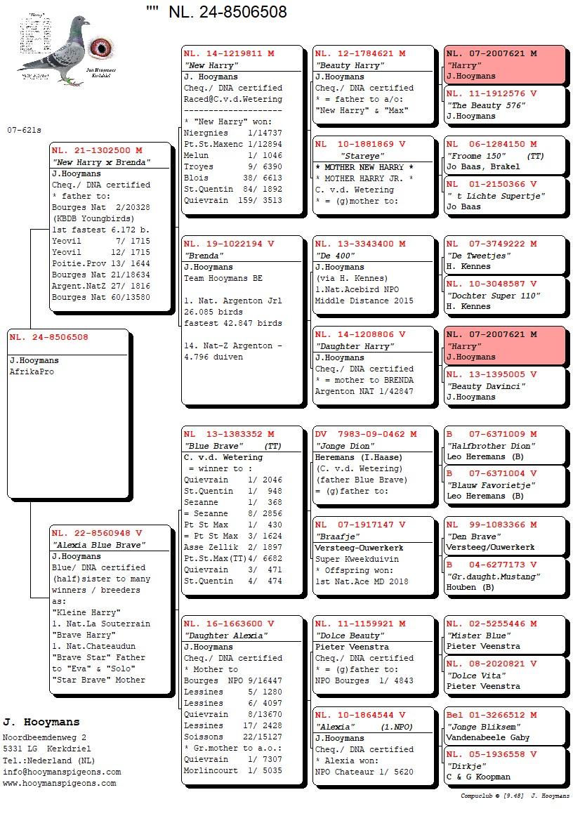 ZZ..LOT 114 AFRIKAPRO AUCTION 4-Team Hooymans.BE I-NL-24-8506700 -SIRE:NL. 19-1023134 M Halfbro Red Harry J. Hooymans Team Hooymans BE 2x 1st Provincial Tulle Prov 1/ 752 Nat 4/ 4451.———-DAM:NL. 18-5002006 V “Daughter Harry Jr.” J.Hooymans Blue/ DNA certified mother to:Montoir Prov 1/ 259, Vierzon Nat 4/15527, Chateau Prov 5/ 2333.SEE PEDIGREE!!!