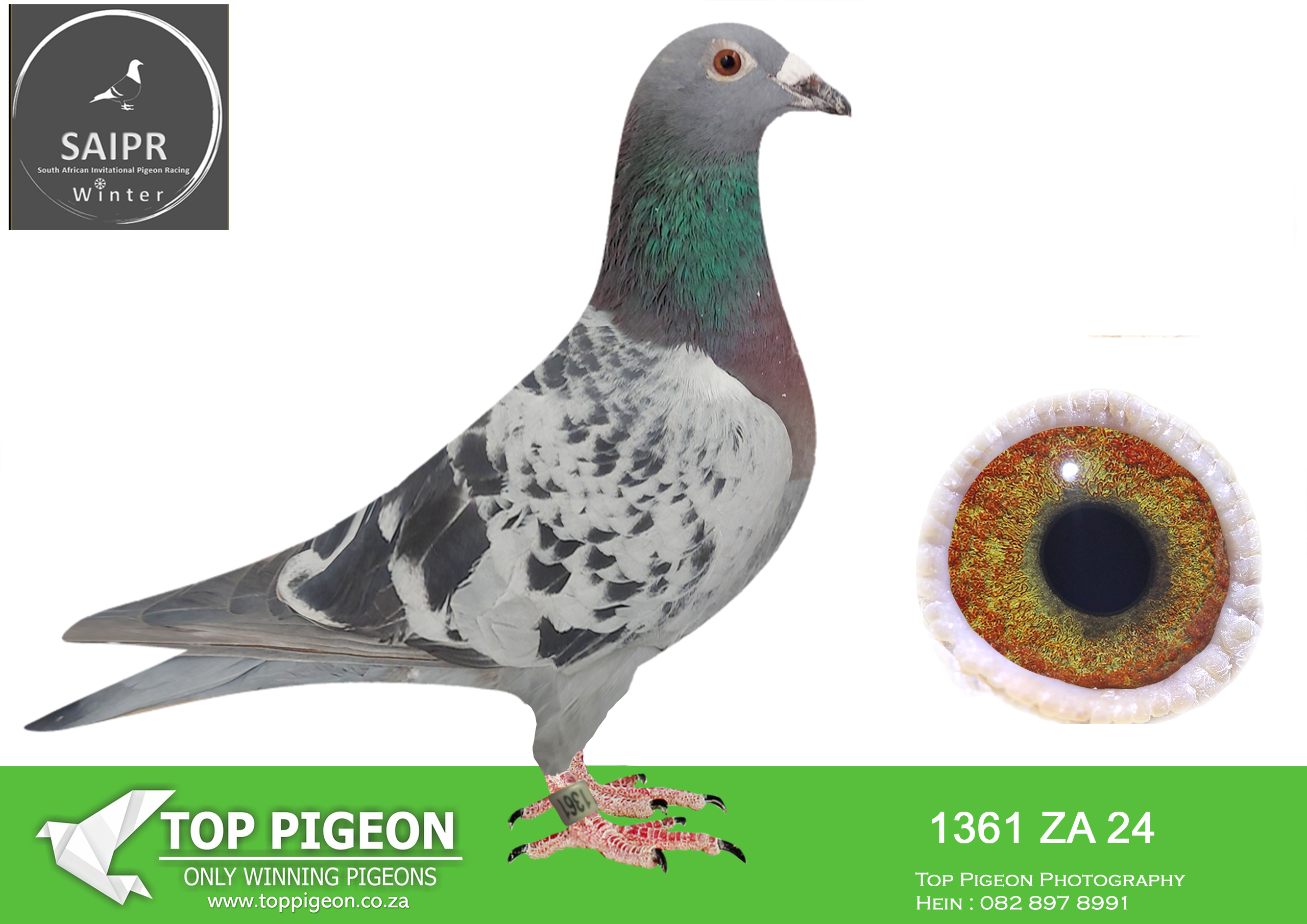 LOT 31 SAIPR AUCTION B -Adendorf Machines-za trpf 24 149*** ——SIRE:ZA 24 ABL 1489 –BOUGHT FOR R30 000.00 ON TOPPIGEON. Very special bred. Halfbrother sister mating back to Special Kittel and the famous DI Caprio lines. Halfbrother/sister to “FIVE STAR”, GREEN JACKET winner AFRIKAPRO 2023.—————DAM:ZA 23 KPU 139 -“PENNY” . BOUGHT FOR R47 000.00 ON TOPPIGEON. Hen Painter Putterie X Golden Carelly CH Entered into SAIPR Winter 2024. Great racer flying 3 X equal 1st from Theunissen, Kroonstad & Glen and 1st from Truckstop. “PENNY” was also ranked 1st Grand Averages after HS 2. “PENNY” is a full sister of our sensational, phenomenal and record breaking “TATJANA”. The mother is our great “ELUSIVE” who is a breeder of winners and breeders of winners. She is out of the same father as some of our greatest pigeons ever including MIRACLE BREEDER “BLUE WHIP”, “SPRINGBOK” and “THE GOLDNE EYE HEN” The father is a spectacular young cock 4 x linebred to the famous “GOLDEN CARELLY”. This cock was bred by our good friend Jaco Faul and handpicked to cross with our Painter Putteries..SEE PEDIGREE!!!
