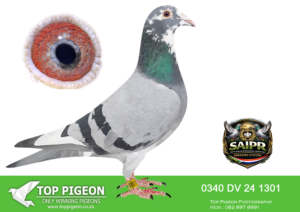 LOT 16 SAIPR BREEDING STATION – DV 24 0340 1301 -SIRE:BE 17 5013721 “SUPER SON HATTRICK”. KARLO V ROMPAEY. HIS SIRE FLEW 1ST NAT BOURGES AGAINST 14 449 PIGEONS——–DAM:0340 19 915 . KOOPMAN.ROMPAEY. THIS IS A GRANDCHILD TO HATTRICK. HATTRICK FLEW 1ST NAT BOURGES AGAINST 14 449 PIGEONS.SEE PEDIGREE!!!
