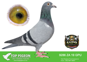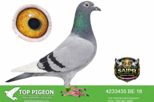 LOT 18 SAIPR BREEDING STATION – 9286 ZA 19 GPU -SIRE: 0504 NRHU 12 ZA “Super 810 Seun” – Sablon Line Direct son of the legendary “810 Super Breeder” (BE 07-4253810) – one of the most influential De Rauw-Sablon foundation pigeons. This line is built on the famous Limoges blood, known worldwide for producing top long-distance and one-loft race performers.———DAM: 539 WRRPA 15 ZAD “Diep Hen” – Kaasboer x 810 A powerful Kaasboer × Sablon (810) hen combining two of the most dominant European winning families. Directly linked to: “Romano” (BELG 13-0946) – Kaasboer line, full brother to 0057 (2x 1st prizes) “Cottage Cheese” (ZA 13-3706) – granddaughter of “810”, from a click pair with multiple top-performing offspring Strong Kaasboer foundation via “Gaston” & “Grote Witpen”, both proven super breeders This dam line is known for: Exceptional breeding consistency Multiple winners produced for GJT Lofts Strong in-hand quality with perfect balance and vitality.SEE PEDIGREE!!!