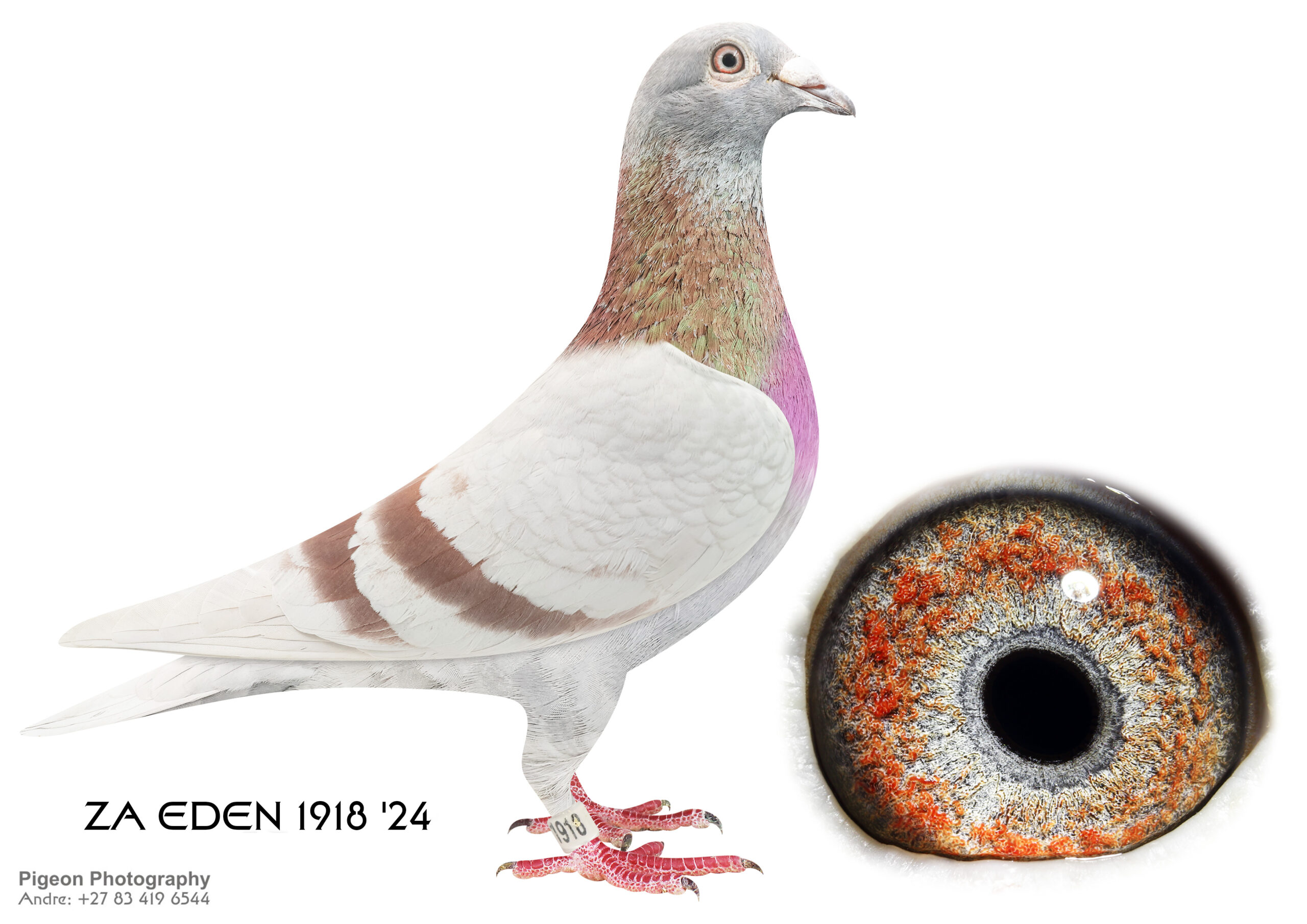 .LOT 4 MASTERS AUCTION – ZA 24 EDEN 1918 -SIRE:28235 ZA 16.Inbred Houben-Clausing His father is Vinkie and he is a Grandson of Ziko SA who bred my Houben-Clausing winning pigeons. This cock bred us 5 times wining positions. All the birds out of this cock can be put to stock. Bred 3rd place ERPF winner from Kimberley (650 km).————DAM:7798 ZA TRPF 20 Houben-Clausing MIEL Houben-Clausing Houben-Clausing inbred bird. This hen also breed winners with different cocks. A great hen. Mother to a ERPF federation winner. 1st place ERPF federation winner from Groblershoop (580 km).SEE PEDIGREE!!!!
