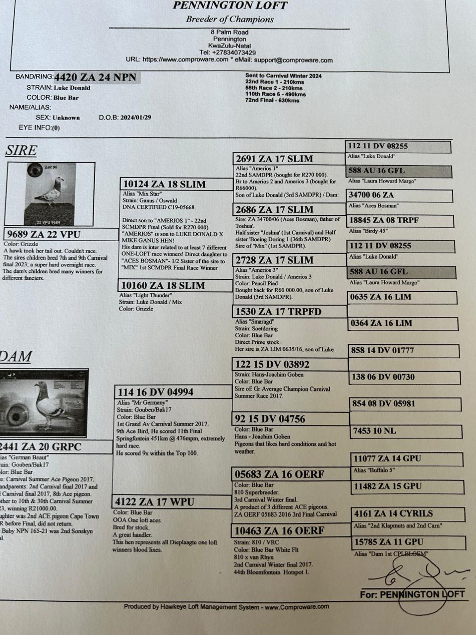 LOT 50 CARNIVAL LOFTS OLR – Pigeon Power-KUYS 24 52 –