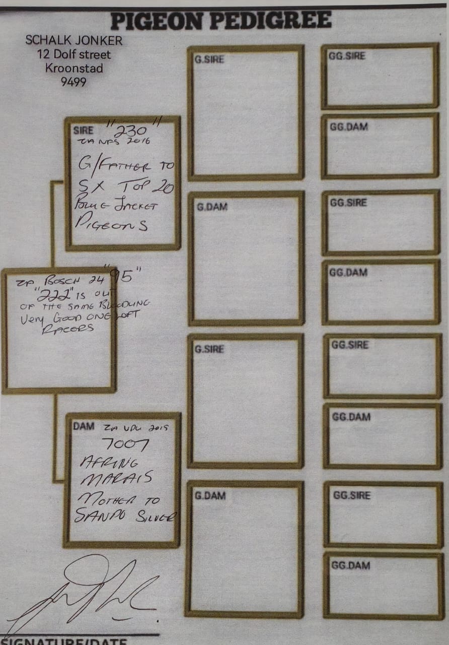 LOT 41 AFRIKAPRO AUCTION 6- Van Heer Racing Pigeons-ZA-24-BPPD-6757 –