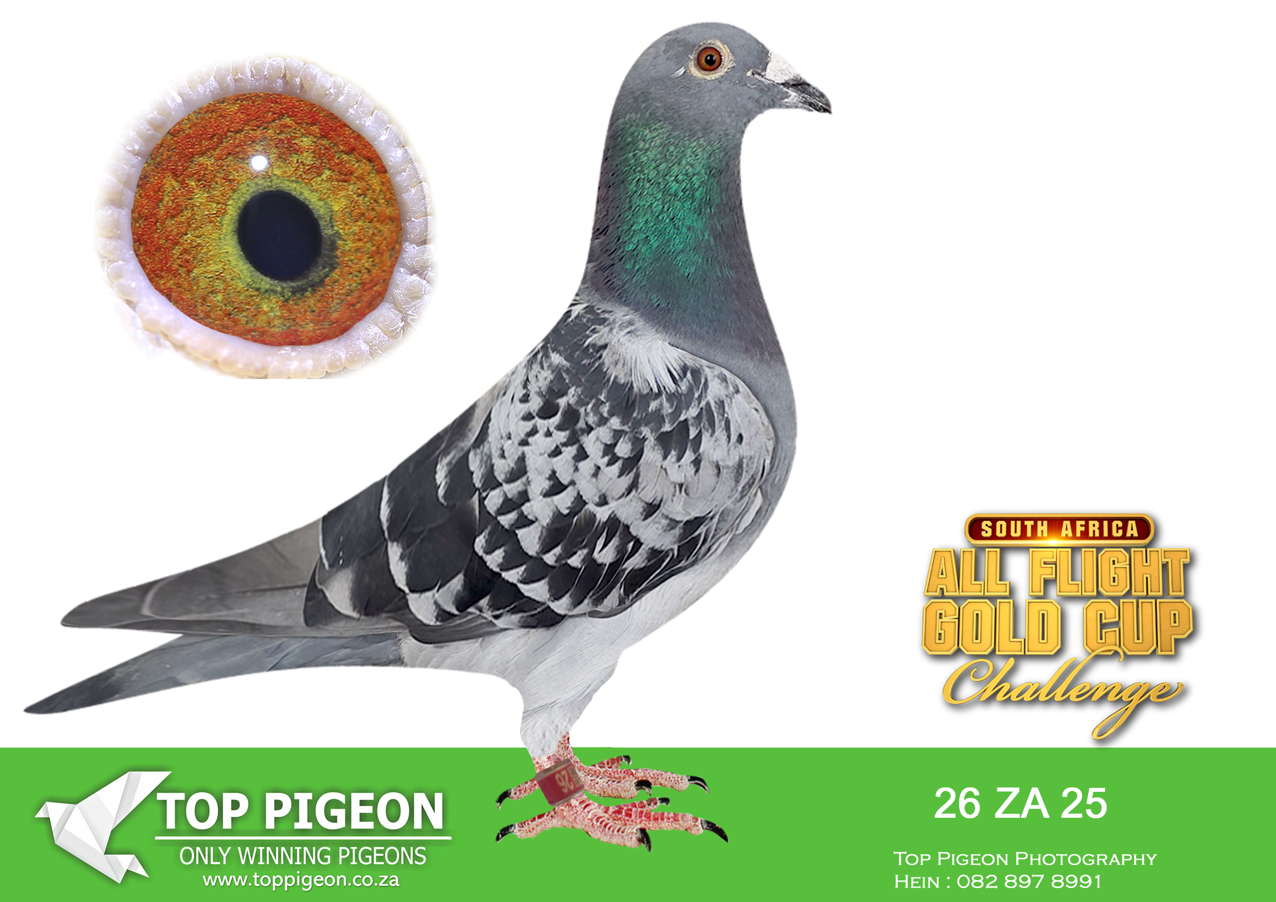 LOT 15 CARNIVAL ALL FLIGHT GOLD CUP -Greg Anderson-GRPF 25 3502 -FINAL RACE WINNER AND 1ST ACE BIRD WINNING A TOTAL OF R175 000.00——–SIRE:366 TRPF 24. HARRY WILLSON. JELLEMA / GANUS. 5TH FINAL CARNIVAL SUMMER 2025. 3RD ACE BIRD CARNIVAL SUMMER 2025.————-DAM:037 HILLCREST 24 HILLCREST HYPE GRIZ 4TH PLACE CARNIVAL GOLD CUP 2025, WINNING R40 000, 4 MINS ,11 SECONDS BEHIND THE WINNER , 2ND ACE BIRD FROM INITIAL ENTRY OF 337, WINNING R15 000.SEE PEDIGREE!!!!