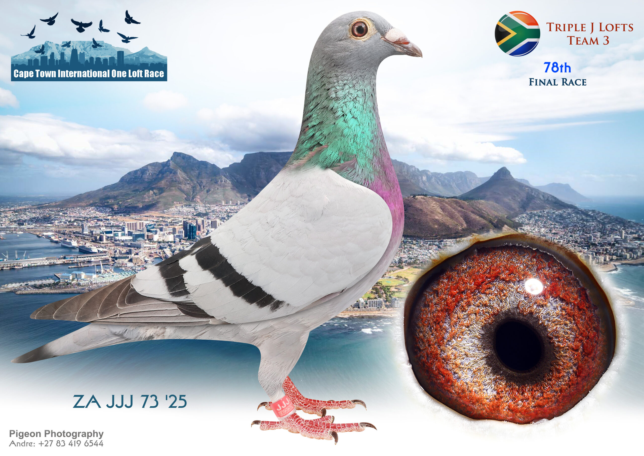 LOT 94 CAPETOWN LOFTS – Triple J Lofts Team 1-ZA-JJJ-25-323*** -Sire: ‘SAFARI’ ZA 2023 JJJ 40 Notes: BRED FOR STOCK – RELATED TO 2012, 2013 & 2016 SAMDPR FINAL WINNERS!————-Dam: ‘GOODA GOODA’ ZA 2024 JJJ 066 Notes: Full sister 419th 2024-25 Pattaya 530km Final Race!!SEE PEDIGREE!!!