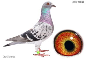 .LOT 8 EASTER AUCTION –ZA FB 24- 19611 -SIRE:ZA-BPPD-22-6397.Father of 66th FINAL Dinokeng Loft 2025!! Full brother to “VICKY” – 2e ACE, 2e FINAL and 1e Knockout Allflight Carnival One Loft!! Full brother to “VICTO” – 1e,1e,2e,12e,14e,21e,61e DIAZ One Loft!! Full brother to “VINCHIA” – 4e Matjiesfontein, 1e Open pigeon 700km Central Provincial Loft!!————-DAM:SK-0999-18-112.68e Hotspot 5 SAMDPR 2019!! 48e Final SAMDPR 2019!! Only raced the last two Races! Exeptional pigeon with a fantastic genetic package.SEE PEDIGREE!!!