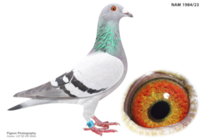 .LOT 4 EASTER AUCTION – NAM 23 1984 HEN -SIRE:ZA BDUD 981/19, is a direct son of “Golden Boy”, already proving his class with top performances including 1st Rugby Club Sale Race, along with excellent positions at 776 km (4th vs 8,330 birds) and 853 km (6th vs 8,568 birds). He is further strengthened by being linebred to “Halover” (1st SAMDPR Final 2014), combining elite endurance with consistency. His bloodline carries the strength of Halover, Di Caprio, and Vandenabeele, making him a top-class breeding cock.———–DAM:ZA BDUD 1667/19, is a daughter of “Golden Boy” and out of the outstanding “Golden Lady”, bringing together elite performance on both sides. She has proven herself in tough competition with 1st place at 591 km (4,220 birds) and 2nd at 745 km (10,137 birds) — clear evidence of her class, durability, and racing intelligence.SEE PEDIGREE!!!!