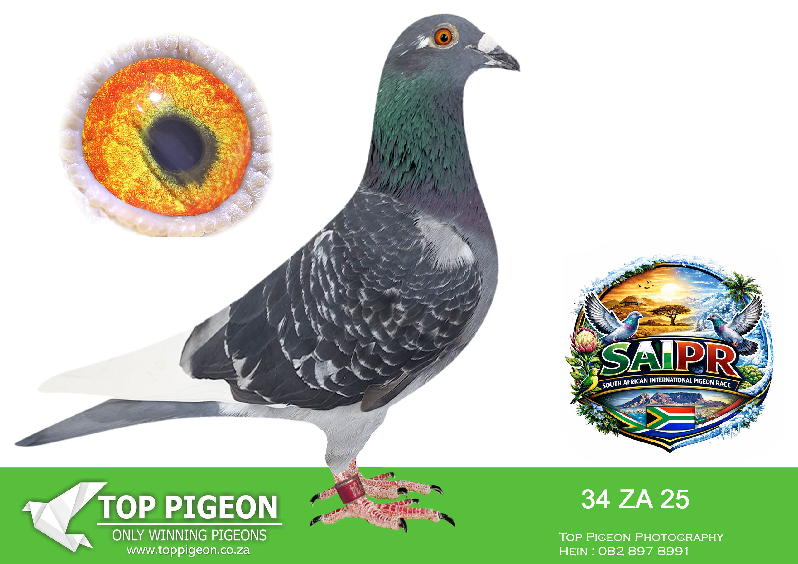 LOT 24 SAIPR SUMMER AUCTION 1 – Theuns Victor- VICTOR 107 2025 -9th Final Race WINNING R30 000.00——–SIRE:483 ZA 19 OOA .Alias “MR WOW” Strain: Tom Lock/Sablon Color: Blue Bar SUPER RACER 8 WEEKS IN A ROW FOR OOA LOFTS!! 7th Club, 18th VPU, Glen, Y/B, 286km, 1369mpm – 1993 pigeons 11th Club, 47th VPU, Tom’s Place, Y/B, 323km, 1416mpm – 2113 pigeons 49th Club, 152nd VPU, Springfontein, Y/B, 424km, 1014mpm————DAM:6493 ZA 21 KUR.Strain: Sablon/Tom Lock Color: Blue Bar.SEE PEDIGREE!!!!