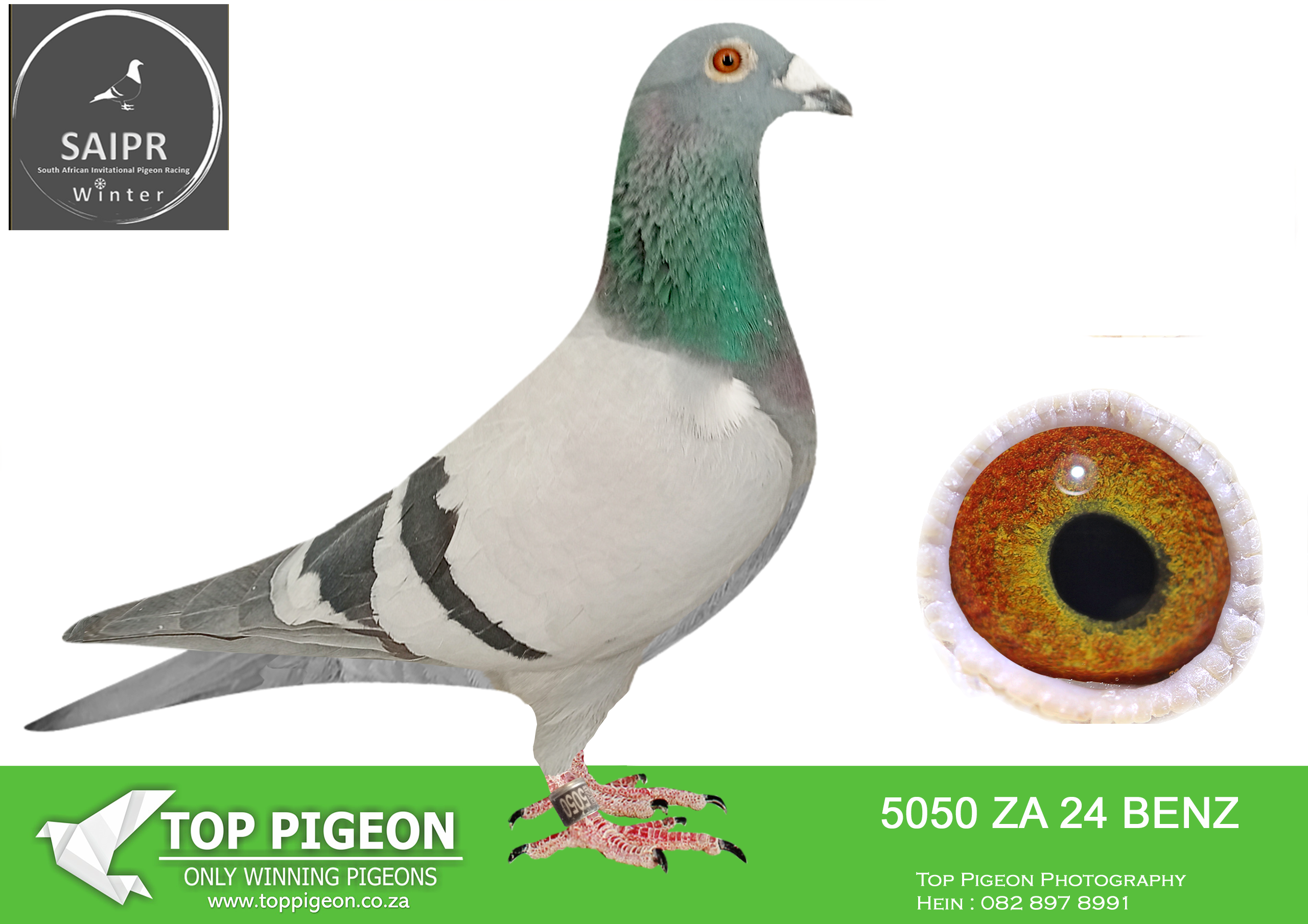 LOT 52 SAIPR AUCTION 2 – Frik Stander-za memel 24 1365*** -NESTMATE TO 8TH ACE PIGEON———–SIRE:ZA 18 GPU 5992 . THIS IS BRED FROM A SUPER MATING : “GOLDEN GASTON” MATED TO WORLD FAMOUS “KIRAN”.———DAM:3524 21 MHPU. DIRK VAN DEN BULCK. SIRE IS HALF BROTHER TO “AMIRA” ALWYN BESTER’S SANPO GOLD MEDAL WINNER AND SOLD FOR R252 000.00.SEE PEDIGREE!!!
