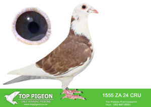 .LOT 1 HANNES TALJAARD – ZA 24 CRU 1555 -NESTMATE SOLD FOR R36 000.00 ON TOPPIGEON———–SIRE:471 ZA 21 ABL. RED CHECK.ALWYN BESTER. HIS SIRE BRED Grandfather to ZA PWDU 9849 2020, 3rd best WORLD ALLROUND BEST BIRD 2021, who is also the 6 x SANPO Gold Medal winner 2021. Also grandfather to ZA PWDU 9060 2020 ,second best Middle distance pigeon PWDU. SIRE to: ZA ABL 604 2022. HIS DAM IS INBRED BACK TO KITTEL.AND IS ALSO DAM TO “AMIRA” SANPO GOLD MEDAL WINNER AND SOLD FRO R252 000.00 ON TOPPIGEON.——————-DAM: 541 ZA 21 ABL . DIRK VAN DEN BULCK. HER SIRE BRED The winning striking rate of 63390 with his click hen 82930 is 80%. Here are just a few of their children: ZA ABL 531 2021 “Dynasty”Grand Averages Winner Dinokeng OLR 2022 1st ZA ABL 343 2021, PWDU winner.HER DAM IS INBRED BACK TO KITTEL. AND IS ALSO DAM TO “AMIRA” SANPO GOLD MEDAL WINNER AND SOLD FRO R252 000.00 ON TOPPIGEON.SEE PEDIGREE!!!