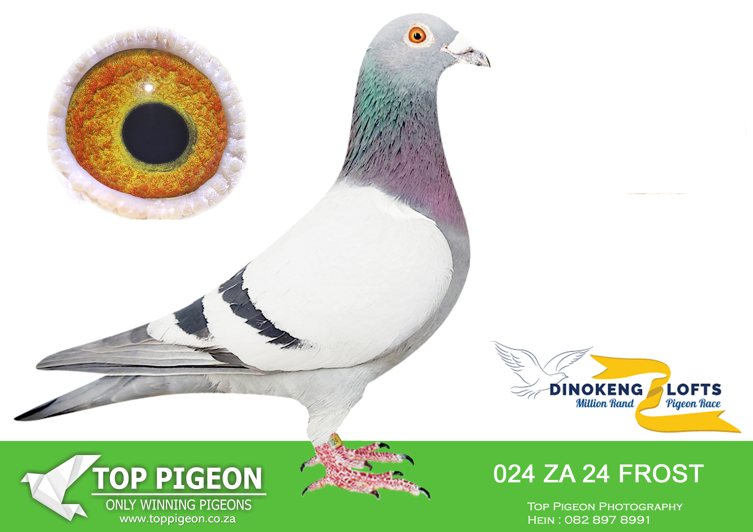 .LOT 1 DINOKENG OLR AUCTION 2 – WILLIE MUNNIK-ZA SANPO 24- 11942 (B) -76TH FINAL , 10TH RACE 4 EQUAL WINNER—————SIRE: HCC 21 ZA 1081. Strain: TOM LOCK/SAMDPR WINNING L Color: BLUEBAR EQUEL 1ST PLACE ALLFLITE SUMMER RACE 2022 SUPER GENES IN THIS PIGEON. TOM LOCK/SABLON-810-/SAMDPR WINNING LINES ACE BIRD SUMMER ODL ALLFITE 2022(AVE SPEED 946,1375MPM————–DAM; 4065 NRHU 24 ZA .Strain: KITTEL Color: BLUEBAR COMPETE IN AFRIKA PRO. 51TH FINAL RACE AND ON THE DAY BIRD.SEE PEDIGREE!!!