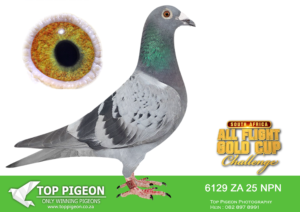 LOT 17 CARNIVAL ALL FLIGHT GOLD CUP -Jason Brown-MRPF 25 11001 -10TH FINAL WINNING R15 000.00 , 7TH ACE BIRD , 13TH HOTSPOT 4 EQUAL WINNER———-SIRE:610 AU 17 PASO. Color: Blue Check White Flt Victoria Falls One Loft Race 235km 1/714 Birds 319km – 57/703 Birds Father To Romen ZA19 MRPF 1226 6th Super Ace 8th Grand Average 10th Final (544km) ZW21 MRPF 4050 17th Hotspot 4.————–DAM:365 DV 17 07274. Strain: Jochen & Nadine Huenten Color: Dark Check Full Sister to Striker: 8th Place Hotspot 3 Victoria falls 2017/2018 Mother To Romen ZA19 MRPF 1226 6th Super Ace 8th Grand Average.SEE PEDIGREE!!!!