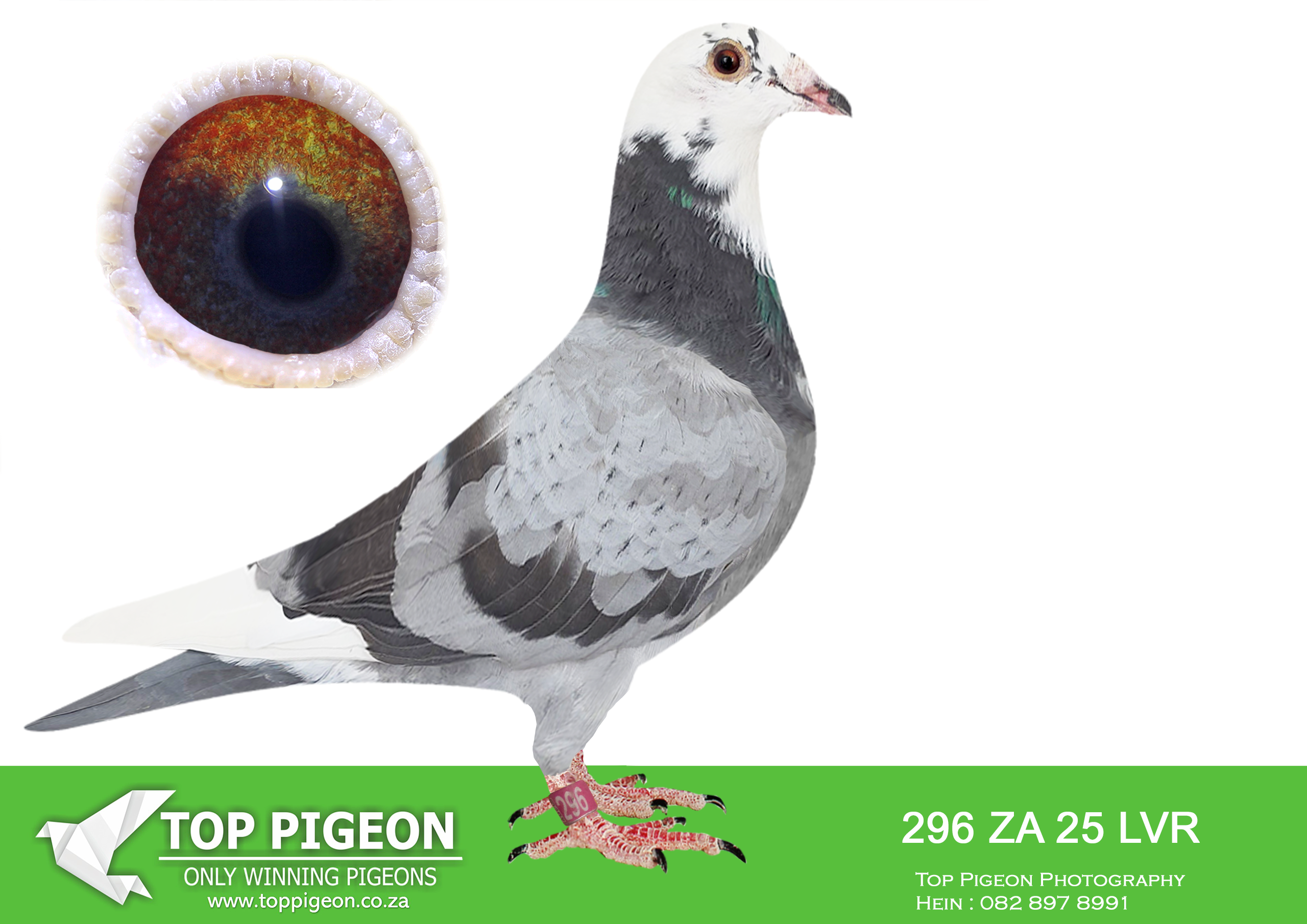 LOT 18 KITTEL AUCTION – ZA 25 LVR 20 -SIRE:1310 ZA 24 ABL.Strain: ALWYN BESTER Color: Blue Chequer Officially 3rd SAIPR FINAL 2025. 4 Pigeons on the drop. Lost by 4 seconds.————-DAM:DAM:175 ZA 24 LVR. KITTEL. BRED FROM SOME OF THE BEST KITTEL GENETICS OF ALWYN BESTER.SEE PEDIGREE!!!