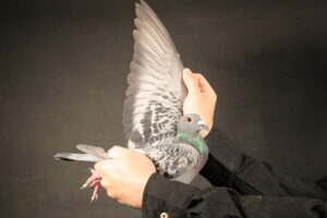 .LOT 9 AFRIKAPRO AUCTION 3 – Die Painters & SG Ullrich-ZA-24-KPU-2307 -Painter Putterie X Bb Direct daughter of a proven pair which produced a winner in their first nest. Mother is one of our top breeding hens “BENNIE SE BOKKIE” – she is the mother to 4th National Ace Long Distance 2024 as well as 3 other individuasl winners when mated to two other cocks. Father is a cock bred by Jules Jurgens out of the lines of the famous “OLD JOE” and Russell vd Merwe’s Gold Medal Winner.SEE PEDIGREE!!!