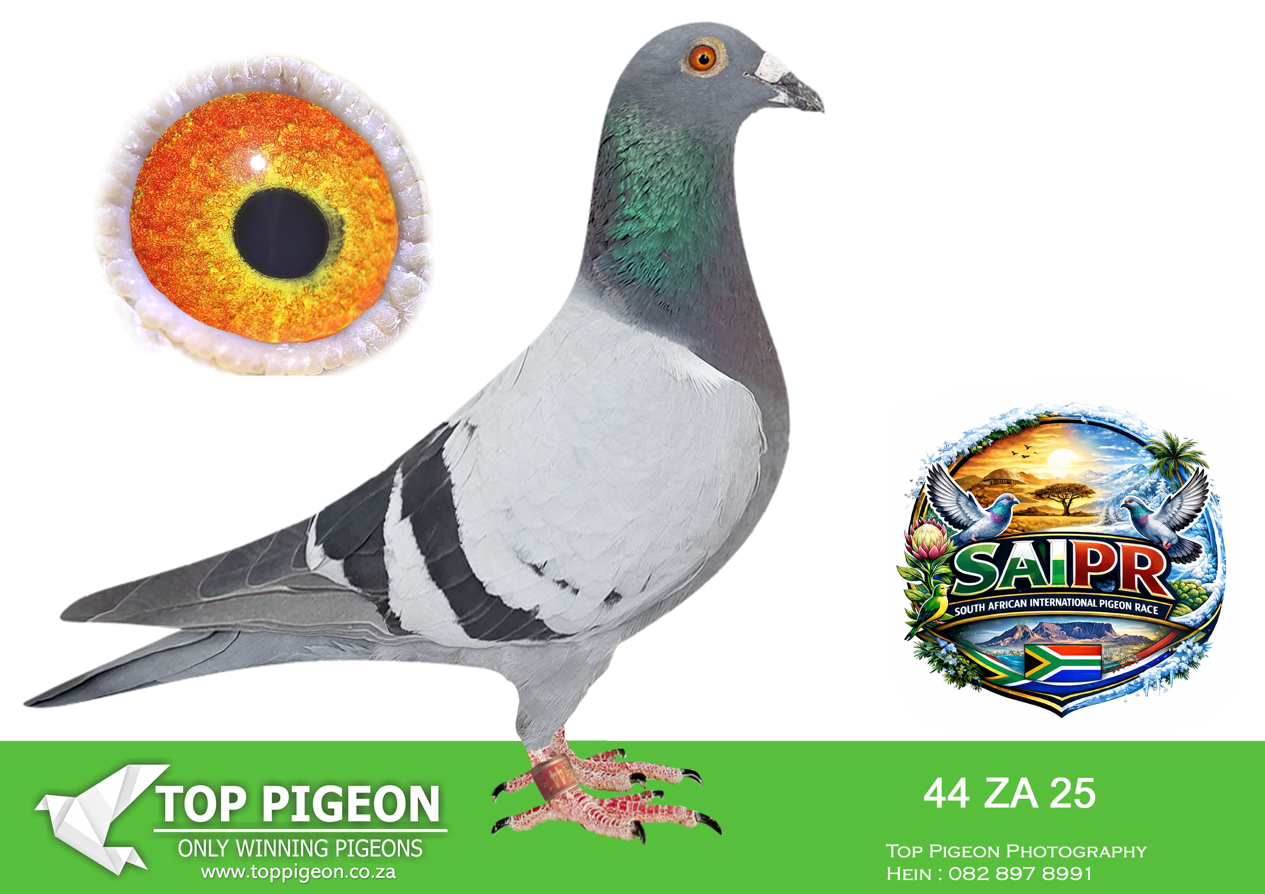 LOT 24 SAIPR SUMMER AUCTION 1 – Theuns Victor- VICTOR 107 2025 -9th Final Race WINNING R30 000.00——–SIRE:483 ZA 19 OOA .Alias “MR WOW” Strain: Tom Lock/Sablon Color: Blue Bar SUPER RACER 8 WEEKS IN A ROW FOR OOA LOFTS!! 7th Club, 18th VPU, Glen, Y/B, 286km, 1369mpm – 1993 pigeons 11th Club, 47th VPU, Tom’s Place, Y/B, 323km, 1416mpm – 2113 pigeons 49th Club, 152nd VPU, Springfontein, Y/B, 424km, 1014mpm————DAM:6493 ZA 21 KUR.Strain: Sablon/Tom Lock Color: Blue Bar.SEE PEDIGREE!!!!