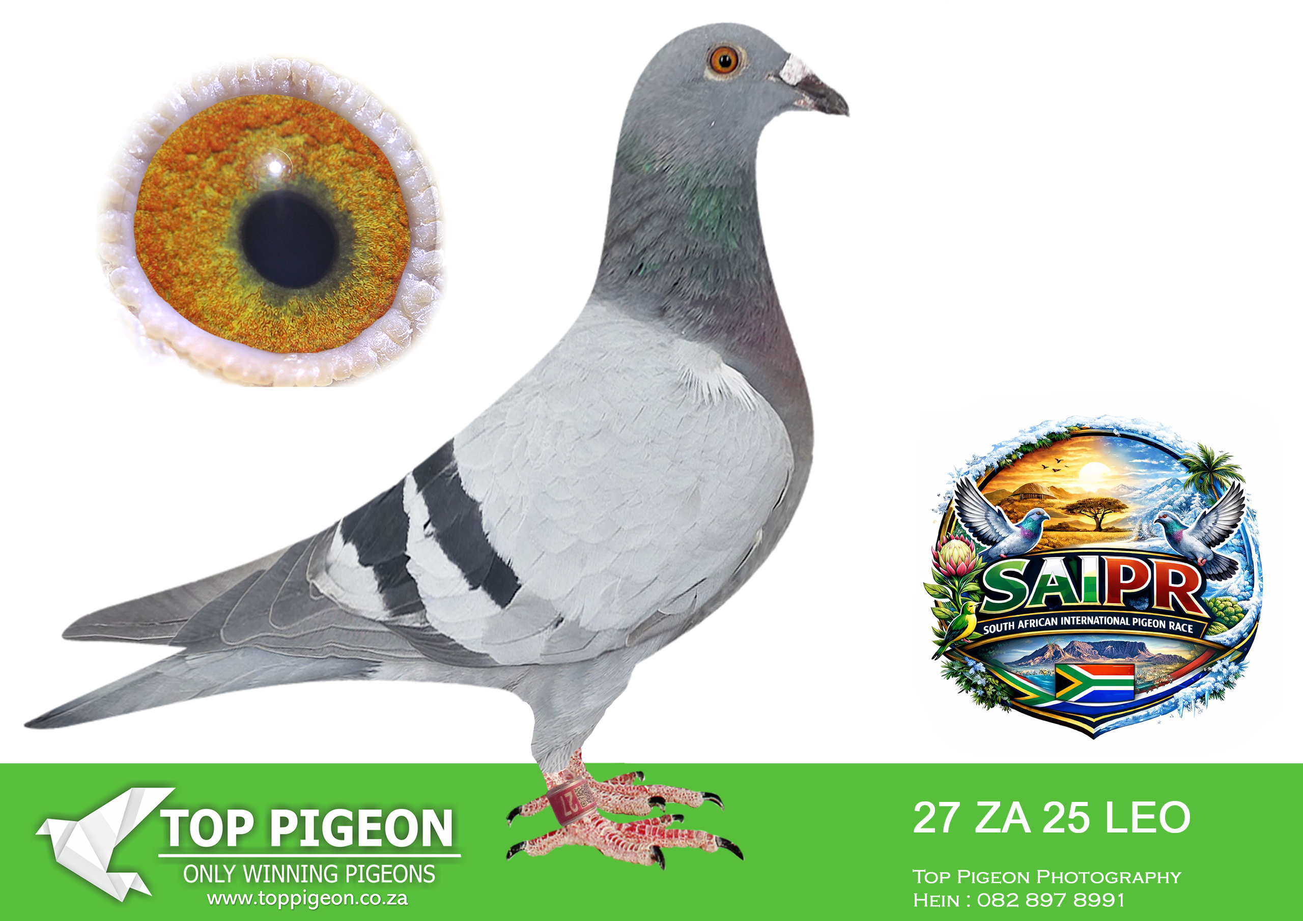 LOT 60 SAIPR SUMMER AUCTION 1 – Leohan hokke-LEO 15 2025 -10TH GRAND AVERAGE ACE BIRD———–SIRE:ZA-2023-ODRA-13178 “BEA” Barend Greyling.• 1e Race 7 Dinokeng 304km 2023. • 8e Barzalona Dinokeng 724km 2023. • 22e Race 2 Dinokeng 350km 2023. • 36e Final Dinokeng 724km 2023. • 54e Race 3 Dinokeng 392km 2023. ======================DAM:ZA-2022-FHC-1379 Fred Coetzer.Super One Loft Genetic!! Her grandfather “Blitz 6” • 5e Final Million Dollar 2161p 2015. • 10e Overall Ave. Million Dollar 2015. Her grandmother “Black Champ” • 9e Final Million Dollar 2453p 2014. • 4e Overall Ave. Million Dollar 2014. Her mother “Magic Mary” • 26e Final Victoria Falls 2017.SEE PEDIGREE!!!