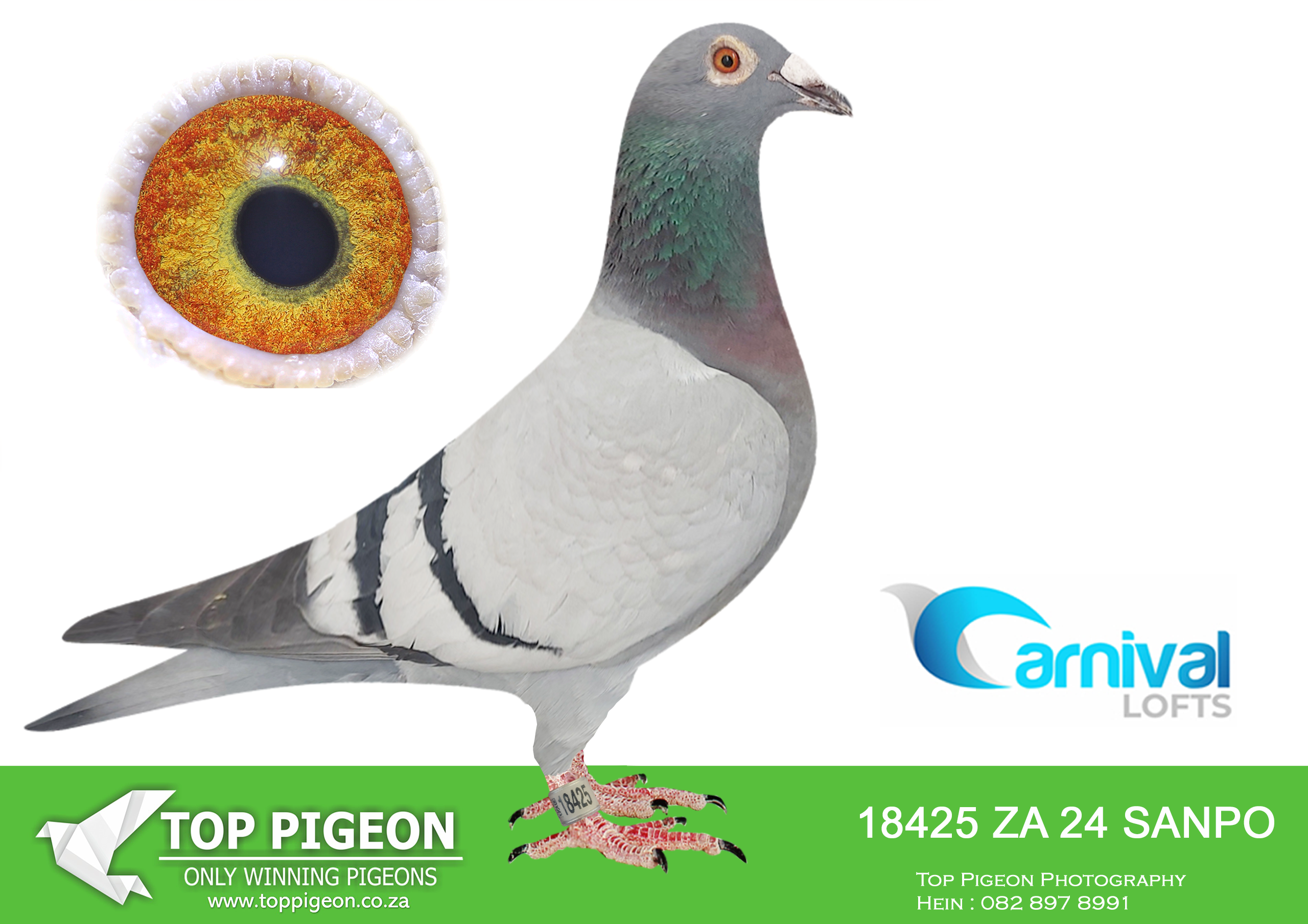 LOT 19 CARNIVAL LOFTS OLR – German Power-KUYS 24 65 -1ST ACE PIGEON . RACE 7 WINNER———–SIRE:ZA-2022-GRPF-4360 Jan van den Bos Blue **”Topside”** Genetics of “Kleine Dirk” x “Annelies” **”Kleine Dirk”** Fenomenale vlieger, • 5e Worldchamp young 1998. • 1e Nat. Ace Netherlands 1999. ============DAM:ZA-2022-OPU-1441 “BLACK MAGIC” Charl Kruger Blue • 5e Ace Central Prov. Lofts 2023. • 19e Race 4 Central Prov. Lofts 2023.SEE PEDIGREE!!!