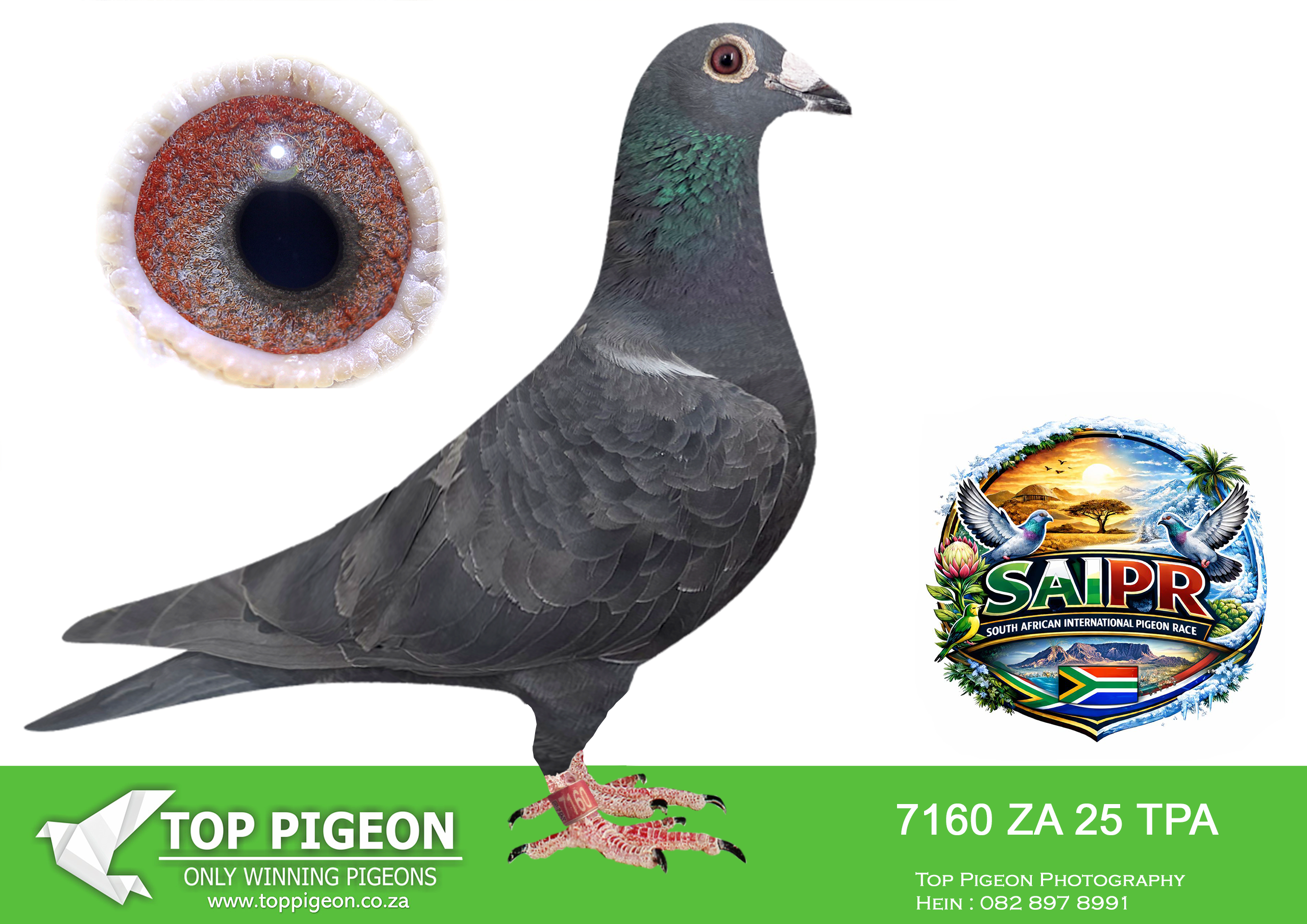LOT 24 SAIPR SUMMER AUCTION 1 – Theuns Victor- VICTOR 107 2025 -9th Final Race WINNING R30 000.00——–SIRE:483 ZA 19 OOA .Alias “MR WOW” Strain: Tom Lock/Sablon Color: Blue Bar SUPER RACER 8 WEEKS IN A ROW FOR OOA LOFTS!! 7th Club, 18th VPU, Glen, Y/B, 286km, 1369mpm – 1993 pigeons 11th Club, 47th VPU, Tom’s Place, Y/B, 323km, 1416mpm – 2113 pigeons 49th Club, 152nd VPU, Springfontein, Y/B, 424km, 1014mpm————DAM:6493 ZA 21 KUR.Strain: Sablon/Tom Lock Color: Blue Bar.SEE PEDIGREE!!!!