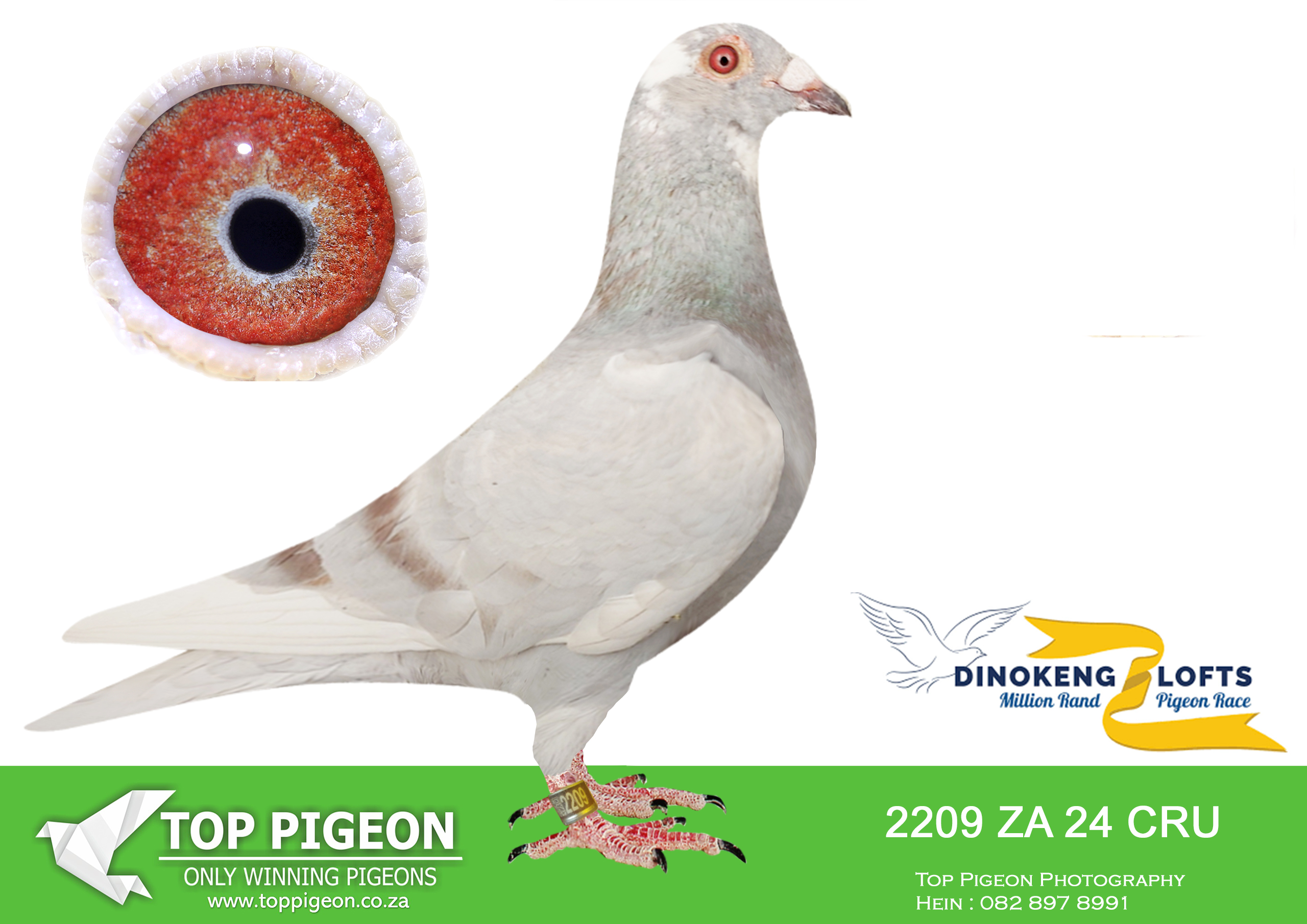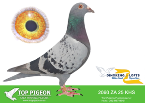 LOT 57 DINOKENG AUCTION 2 – BOTHA LOFTS-ZA CRU 24- 2015 -SAME BRED SOLD FOR R33 000.00 ON TOPPIGEON—-SIRE:1782 ZACRU 21. DU PREEZ & DEETLEFS.(SIRE AND DAM SOLD FOR R580 000.00) THIS COCK IS A FULL BROTHER TO TURBO KITTEL OF BARNIE AND JOHN.TURBO KITTEL WAS THE BEST PIGEON IN SA WINNING 8 SANPO GOLD MEDALS. ——–DAM:1502 ZA CRU 21.BRED FOR STOCK. THIS IS BRED OUT OF “HOPE” . “HOPE HAS WON THE BAKKIE RACE DINOKENG 2020.SEE PEDIGREE!!