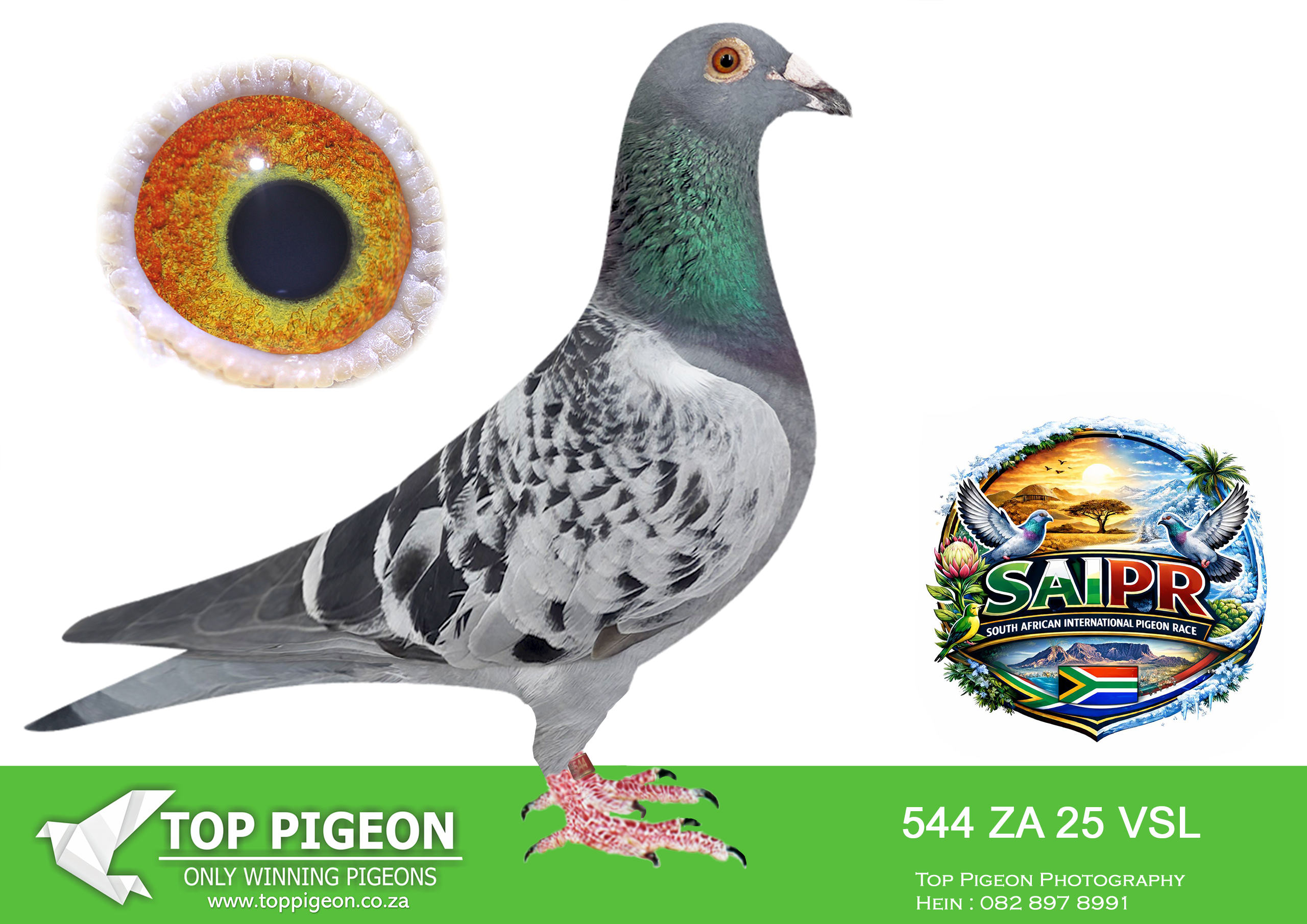 LOT 15 SAIPR SUMMER AUCTION 1 – Cannistaro 2- VSL 546 2025 -2ND FINAL RACE WINNING R200 000.00—-6TH ACE BIRD——–SIRE:201 ZA VSL 22 KAMAKAZI RETURN Colou BB GANUS SUPER BREEDING SON OF KAMAKAZI SIRE OF MULTIPLE WINNERS AND TOP PERFORMERS. SIRE TO 2ND AIPR SUMMER FINAL AND 5TH OVERALL ACE PIGEON 2026———–DAM:1014 ZA VSL 24 ONE LOFT QUEEN Colou BB ALL ACES BRED OUT OF THE WORLDS BEST FERFORMING OLR CHAMPIONS. BRED FOR STOCK AND SHE WILL BE A FUTURE CHAMPION. DAM TO 2ND SAIPR SUMMER FINAL AND 5TH OVERALL ACE PIGEON 2026 WHAT A START TO A BREEDING CAREER.SEE PEDIGREE!!!!