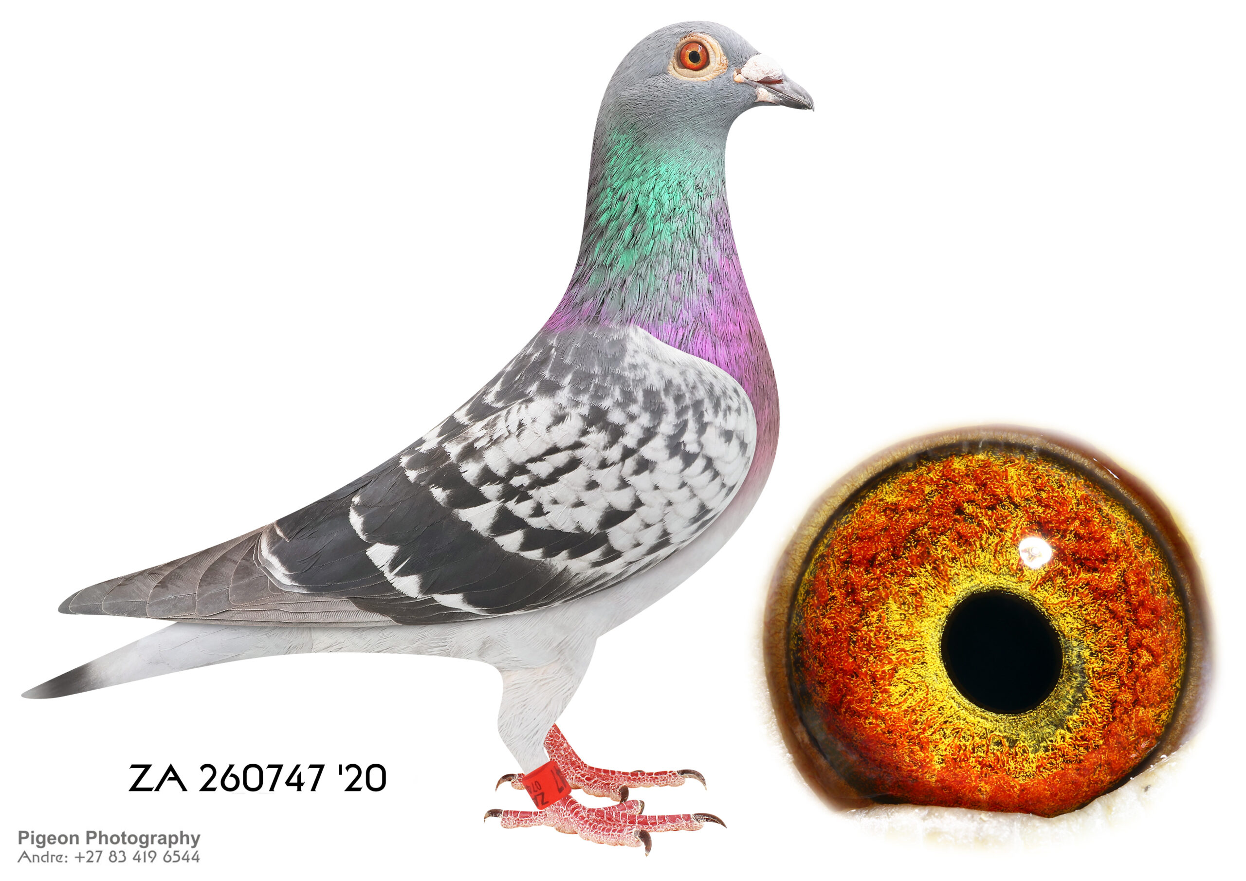 LOT 20 CORRIE NAUDE 2 – ZA 20 TRPF 4858 -SIRE:29737 ZA 15.Sanpo Gold Medal Pair The father is Seabiscuit who was the SANPO Gold Medal winner. The best bird over all distances. Mated to Hetti. One of the best Million Dollar Race pigeons, bred out of Gabi Vandenabeele bloodline. The legendary Wittenbuik cock in Belgium.———DAM:3036 ZA GPU 18 Gold Medal BBPD Sanpo Gold & Silver Medal Pair Short Dis The Sire of this hen is a Spritzie Jansen Cock and 3 x winner. Best pigeon in the WRRPA and one of the SANPO Gold Medal Short Distance winners. The Dam of this hen is my SA National Pigeon Organisation Silver Medal Winner Short distance 2013.SEE PEDIGREE!!!!