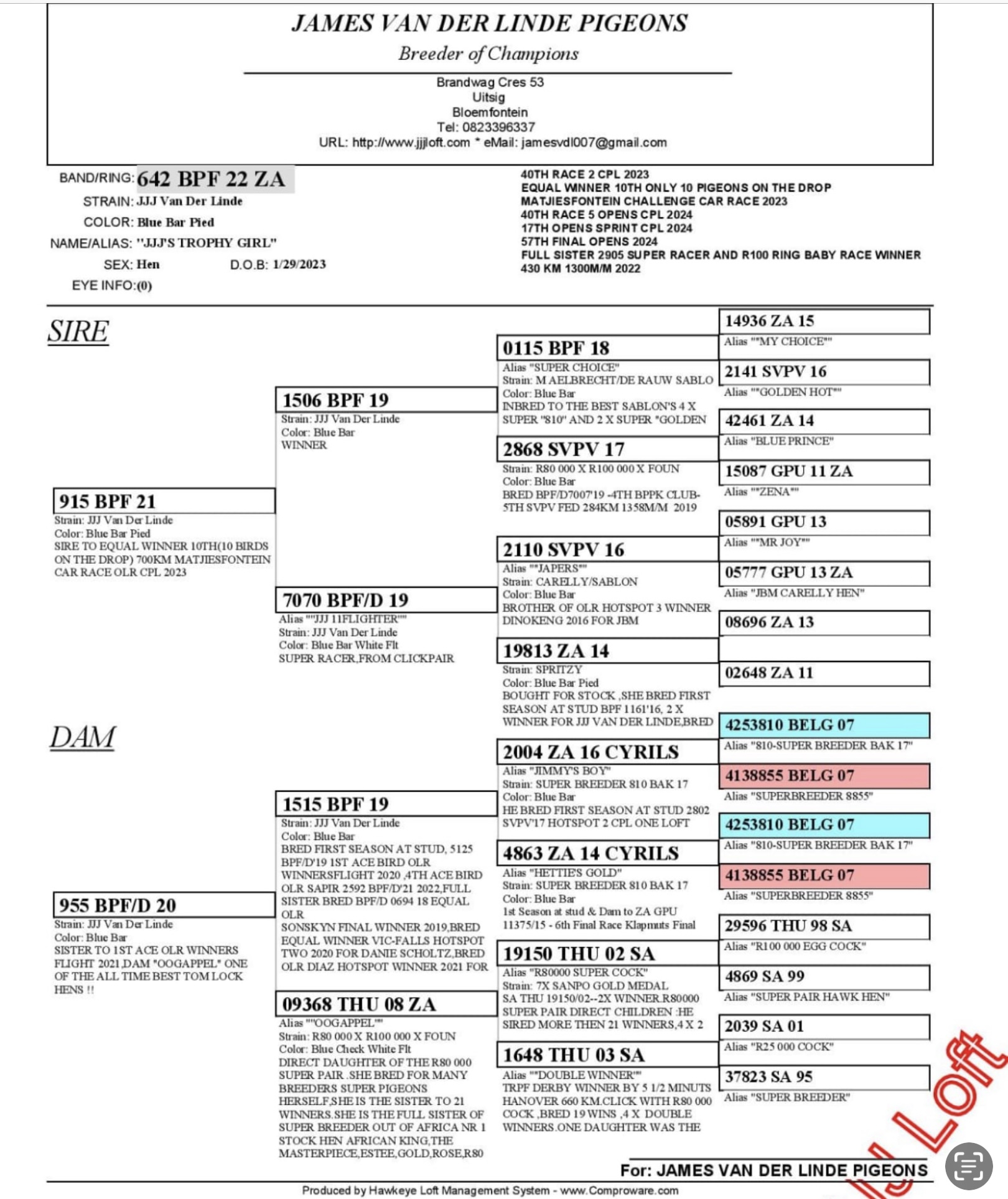 Racing pigeon auctions in SA and abroad