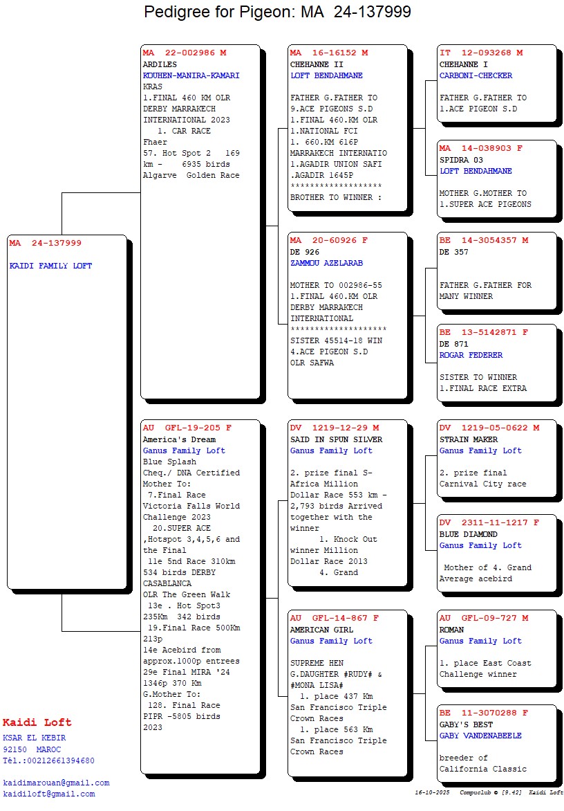 LOT 72 AFRIKAPRO AUCTION 4 – Kaidi Family Loft-MAROC-24-137920 –