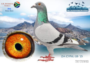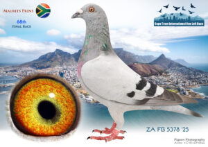 LOT 10 CAPETOWN LOFTS – Coenie Hatting & Willie Brink Team 1-ZA-BPF-25-189*** -10TH FINAL RACE———SIRE:ZA CAS 87/23 Alias “Game changer” Strain: Ciske/Kittle Van Waveren Color: Blue Bar WF.———–DAM:KEFS UNR 0/19 Strain: Coenie Hattingh Lofts Color: Blue Bar WF.SEE PEDIGREE!!!