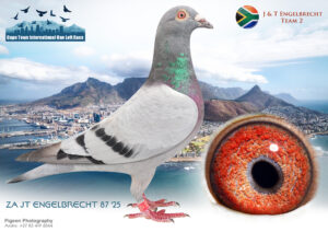 LOT 57 CAPETOWN LOFTS – J & T Engelbrecht Team 2-ZA-JT ENGELBRECHT-25-87*** -SIRE:99 JT ENGELBRECHT 24 Romario/Mix?Wolveri ne/Halover.——–DAM:31210 ZA21 BEKKIE BBAR ENGELBRECHT.SUPER GENES DESCENDANT OF PIGEONS LIKE “CLEVER PIED'” PARENTS + SISTER .,A1-SHORTCUT” GRANDSON “KANNIBAAL'” “SUPER PAULINA”.SEE PEDIGREE!!!!