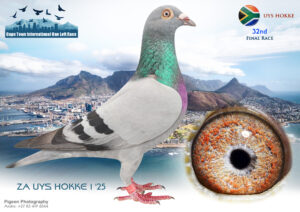 LOT 52 CAPETOWN LOFTS – JTC Hokke-ZA-WBU-25-1079*** -SIRE:580 ZA OOA 19.Soetdoring Lofts This is something special the best of Soetdoring Lofts put together in this pedigree. On the mother side there is 3 One Loft Winners and on the Fathers side you will find Luke Donald 3rd SAMDPR.———–DAM:48 ZA DPL 21 GRZ Dieplaagte Inbred Amerios 3 and best of Florea Sorin. Dam 3097 BPPD 22 Carnival Summer 23 Entry 36th Final and 59th Ace Pigeon.SEE PEDIGREE!!!