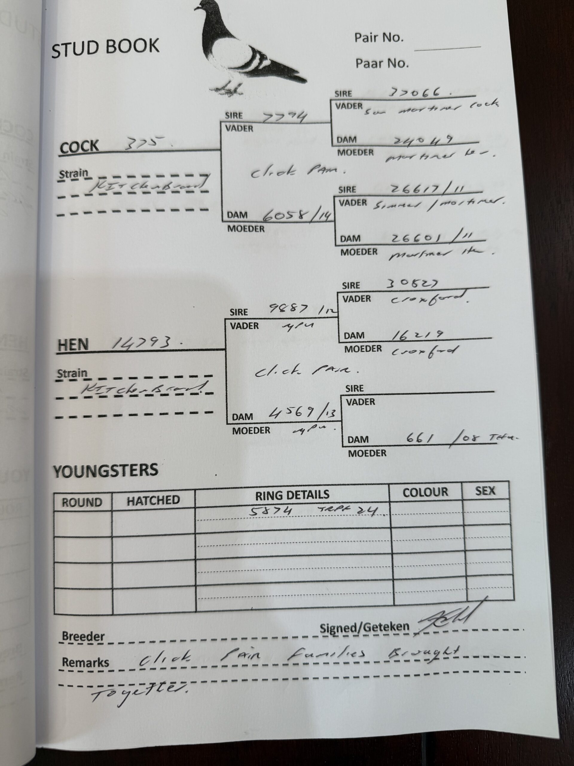 LOT 90 AFRIKAPRO AUCTION 1 – Len Knoetze Lofts 3-ZA-24-FB-14029 -SIRE:21 SRPV 1490 “Black Hawk” EINKAMERER BB.————DAM:22 ZA 0068 “Astro” EINKAMERER BB.SEE PEDIGREE!!!