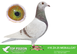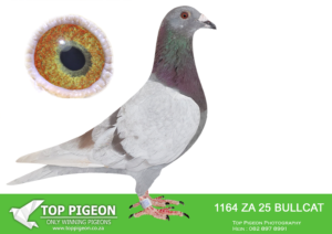 LOT 11 MIKE ENGELBRECHT – ZA 25 ME BULLCAT 396 -SIRE:ZA 24 OP 12310.GREIPEL/KITTEL/LEO HEREMANS. THIS IS BRED FROM THE BEST GENETICS AROUND THE WORLD.———–DAM:11355 ZA 18 GPU.SUMO LOCK. Out of an upcoming click pair. She herself won us R33000 in the union expensive rings. Study the pedigree – many top pigeons in there. Very nice handler..SEE PEDIGREE!!!!