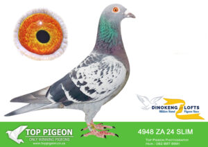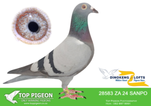 .LOT 1 DINOKENG OLR AUCTION 2 – WILLIE MUNNIK-ZA SANPO 24- 11942 (B) -76TH FINAL , 10TH RACE 4 EQUAL WINNER—————SIRE: HCC 21 ZA 1081. Strain: TOM LOCK/SAMDPR WINNING L Color: BLUEBAR EQUEL 1ST PLACE ALLFLITE SUMMER RACE 2022 SUPER GENES IN THIS PIGEON. TOM LOCK/SABLON-810-/SAMDPR WINNING LINES ACE BIRD SUMMER ODL ALLFITE 2022(AVE SPEED 946,1375MPM————–DAM; 4065 NRHU 24 ZA .Strain: KITTEL Color: BLUEBAR COMPETE IN AFRIKA PRO. 51TH FINAL RACE AND ON THE DAY BIRD.SEE PEDIGREE!!!