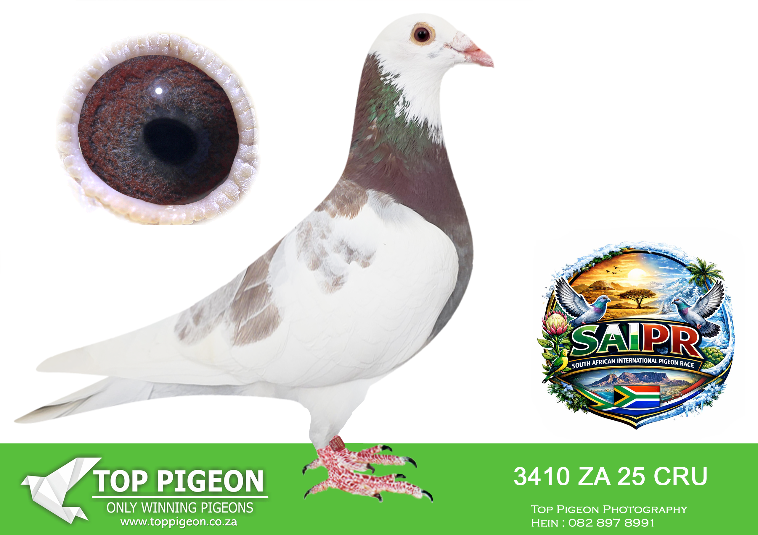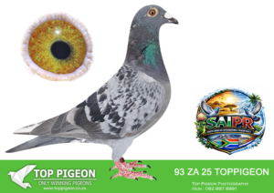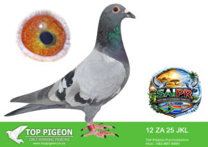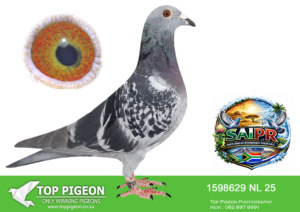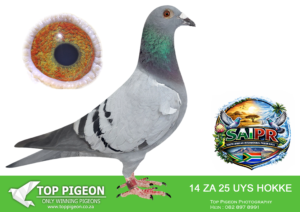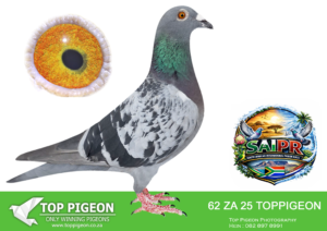 LOT 24 SAIPR SUMMER AUCTION 1 – Theuns Victor- VICTOR 107 2025 -9th Final Race WINNING R30 000.00——–SIRE:483 ZA 19 OOA .Alias “MR WOW” Strain: Tom Lock/Sablon Color: Blue Bar SUPER RACER 8 WEEKS IN A ROW FOR OOA LOFTS!! 7th Club, 18th VPU, Glen, Y/B, 286km, 1369mpm – 1993 pigeons 11th Club, 47th VPU, Tom’s Place, Y/B, 323km, 1416mpm – 2113 pigeons 49th Club, 152nd VPU, Springfontein, Y/B, 424km, 1014mpm————DAM:6493 ZA 21 KUR.Strain: Sablon/Tom Lock Color: Blue Bar.SEE PEDIGREE!!!!