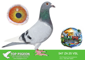 LOT 15 SAIPR SUMMER AUCTION 1 – Cannistaro 2- VSL 546 2025 -2ND FINAL RACE WINNING R200 000.00—-6TH ACE BIRD——–SIRE:201 ZA VSL 22 KAMAKAZI RETURN Colou BB GANUS SUPER BREEDING SON OF KAMAKAZI SIRE OF MULTIPLE WINNERS AND TOP PERFORMERS. SIRE TO 2ND AIPR SUMMER FINAL AND 5TH OVERALL ACE PIGEON 2026———–DAM:1014 ZA VSL 24 ONE LOFT QUEEN Colou BB ALL ACES BRED OUT OF THE WORLDS BEST FERFORMING OLR CHAMPIONS. BRED FOR STOCK AND SHE WILL BE A FUTURE CHAMPION. DAM TO 2ND SAIPR SUMMER FINAL AND 5TH OVERALL ACE PIGEON 2026 WHAT A START TO A BREEDING CAREER.SEE PEDIGREE!!!!