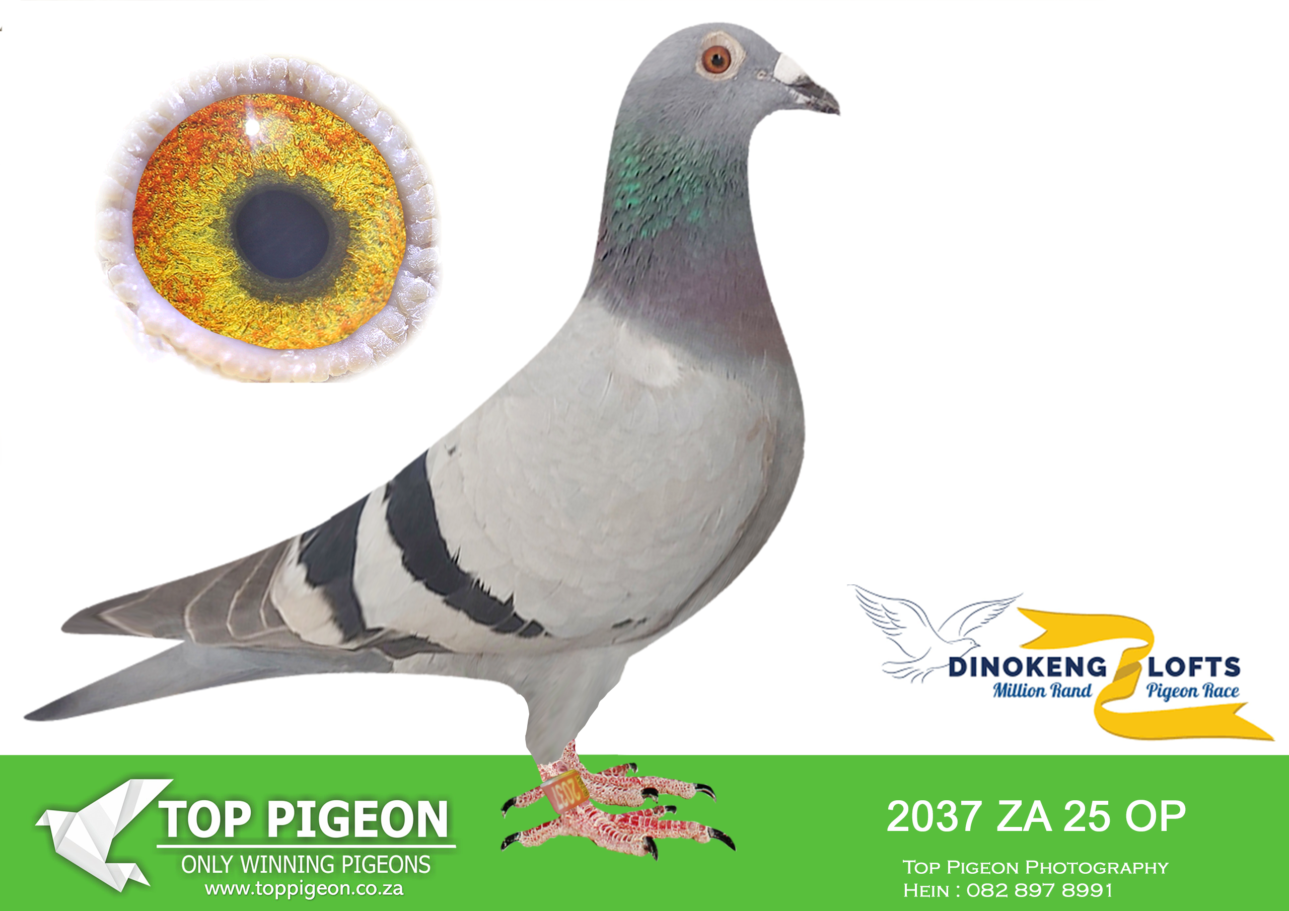 .LOT 1 DINOKENG OLR AUCTION 2 – WILLIE MUNNIK-ZA SANPO 24- 11942 (B) -76TH FINAL , 10TH RACE 4 EQUAL WINNER—————SIRE: HCC 21 ZA 1081. Strain: TOM LOCK/SAMDPR WINNING L Color: BLUEBAR EQUEL 1ST PLACE ALLFLITE SUMMER RACE 2022 SUPER GENES IN THIS PIGEON. TOM LOCK/SABLON-810-/SAMDPR WINNING LINES ACE BIRD SUMMER ODL ALLFITE 2022(AVE SPEED 946,1375MPM————–DAM; 4065 NRHU 24 ZA .Strain: KITTEL Color: BLUEBAR COMPETE IN AFRIKA PRO. 51TH FINAL RACE AND ON THE DAY BIRD.SEE PEDIGREE!!!