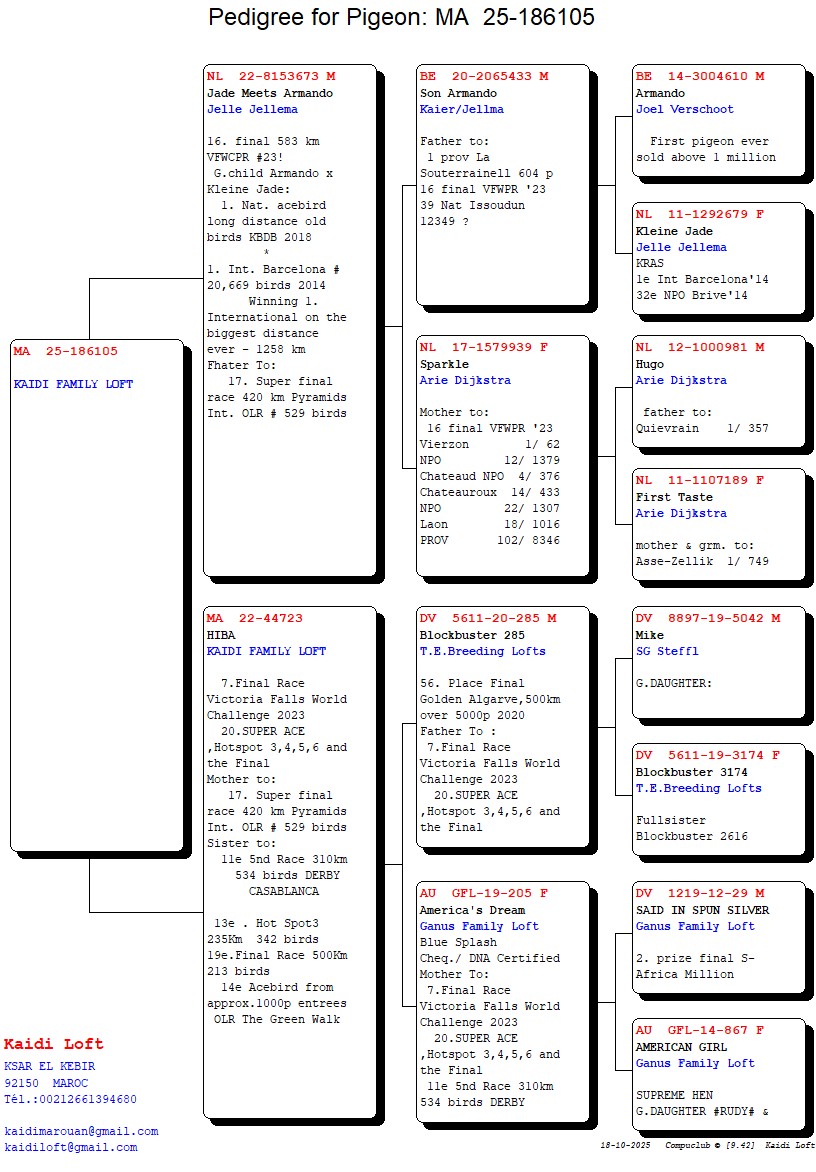 ZZ..LOT 124 AFRIKAPRO AUCTION 5 – Kaidi Family Loft – Bousselham Bennane-MAROC-25-186105 –