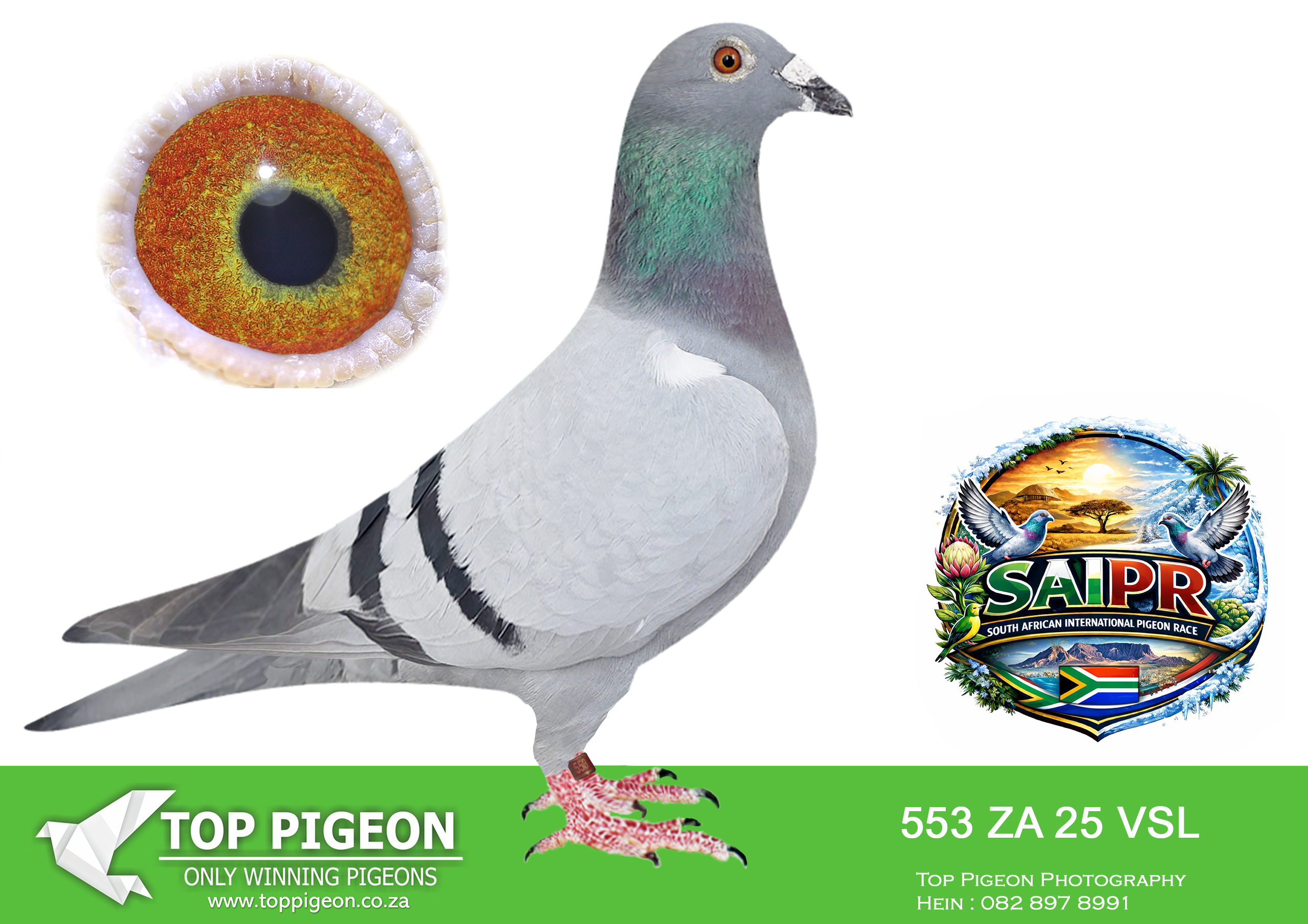 LOT 10 SAIPR SUMMER AUCTION 1 – VSL & Ignis 1- VSL 551 2025 – FINAL RACE WINNER WINNING R475 000.00——–SIRE:11 ZA VSL 23 SUPER ELEVEN Colou BCWF MELT’S BEST KITTEL BRED FOR STOCK SUPER ELENEN BEST KITTEL. SUPER BREEDER OF WINNERS AND ACE BIRDS.SIRE OF SUMMER FINAL SAIPR WINNER 2026 AND 3RD GRAND AVER WINNER.—————-DAM:1648 ZA WPU 21 SIS TOONTJIES Colou BB ORNAT/ROCKET/MONA LISA SUPER BREEDER. DAM OF SAIPR SUMMER FINAL WINNER 2026 AND 3RD ACE BIRD.SEE PEDIGREE!!!!