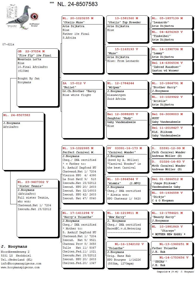 ZZ..LOT 114 AFRIKAPRO AUCTION 4-Team Hooymans.BE I-NL-24-8506700 -SIRE:NL. 19-1023134 M Halfbro Red Harry J. Hooymans Team Hooymans BE 2x 1st Provincial Tulle Prov 1/ 752 Nat 4/ 4451.———-DAM:NL. 18-5002006 V “Daughter Harry Jr.” J.Hooymans Blue/ DNA certified mother to:Montoir Prov 1/ 259, Vierzon Nat 4/15527, Chateau Prov 5/ 2333.SEE PEDIGREE!!!